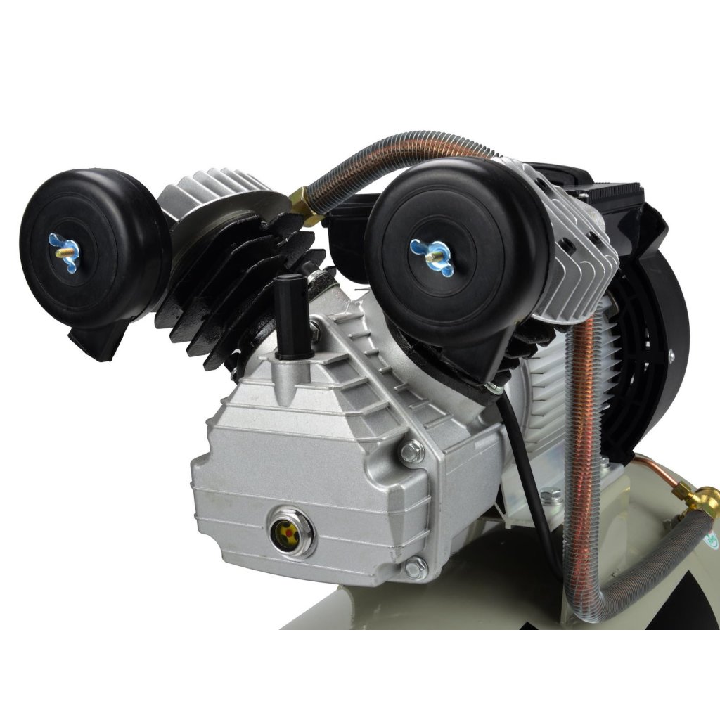 Olejový kompresor s výkonným 2-pístovým motorem ve tvaru V o výkonu 3 HP a objemem nádrže 50 litrů. Vybaven reduktorem tlaku, který umožňuje nastavení hodnoty tlaku v nádrži. Dva písty umožňují dlouhodobý provoz kompresoru.
