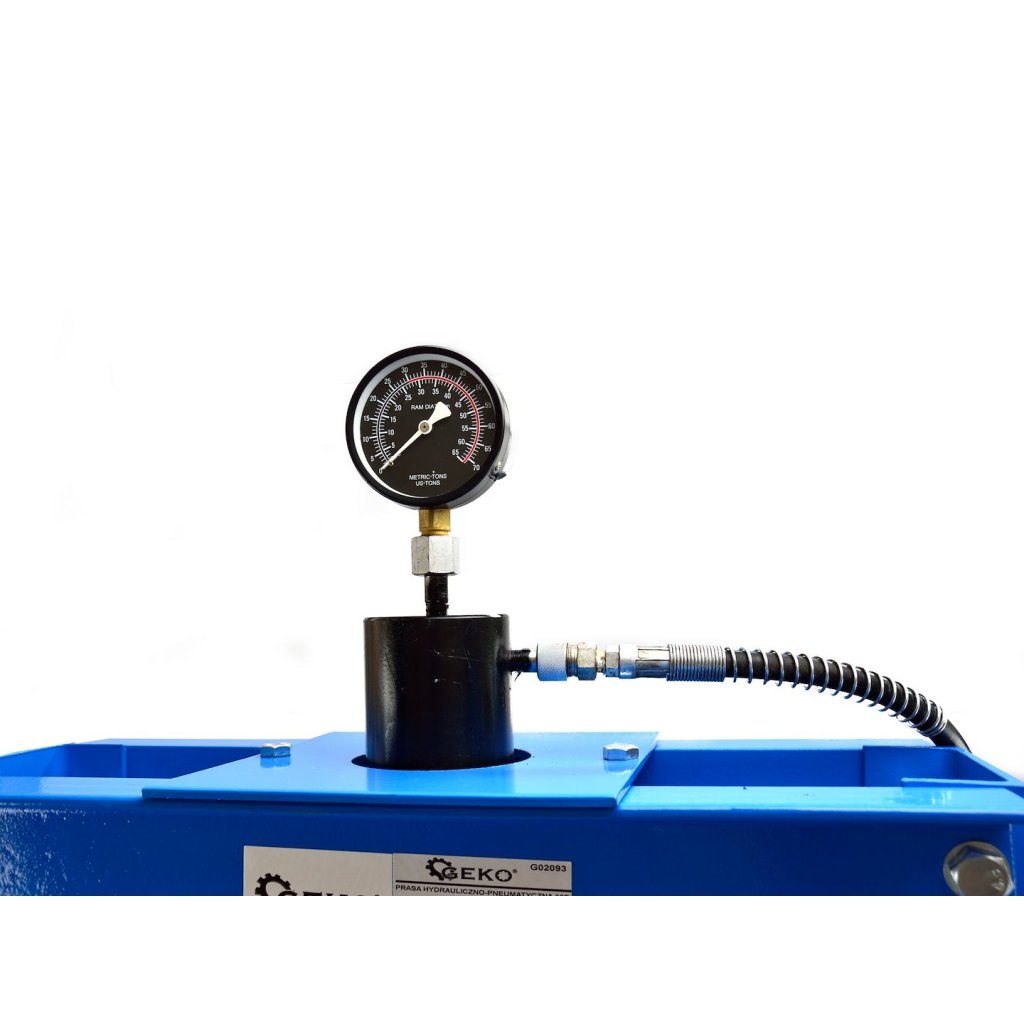 Hydraulicko-pneumatická lis s tlakem 30T s manometrem. Vhodný pro opravárenské a servisní dílny, průmyslové podniky i zemědělství. Rám, který drží celou konstrukci, byl dodatečně zesílen, což zajišťuje odolnost proti mechanickému poškození.
