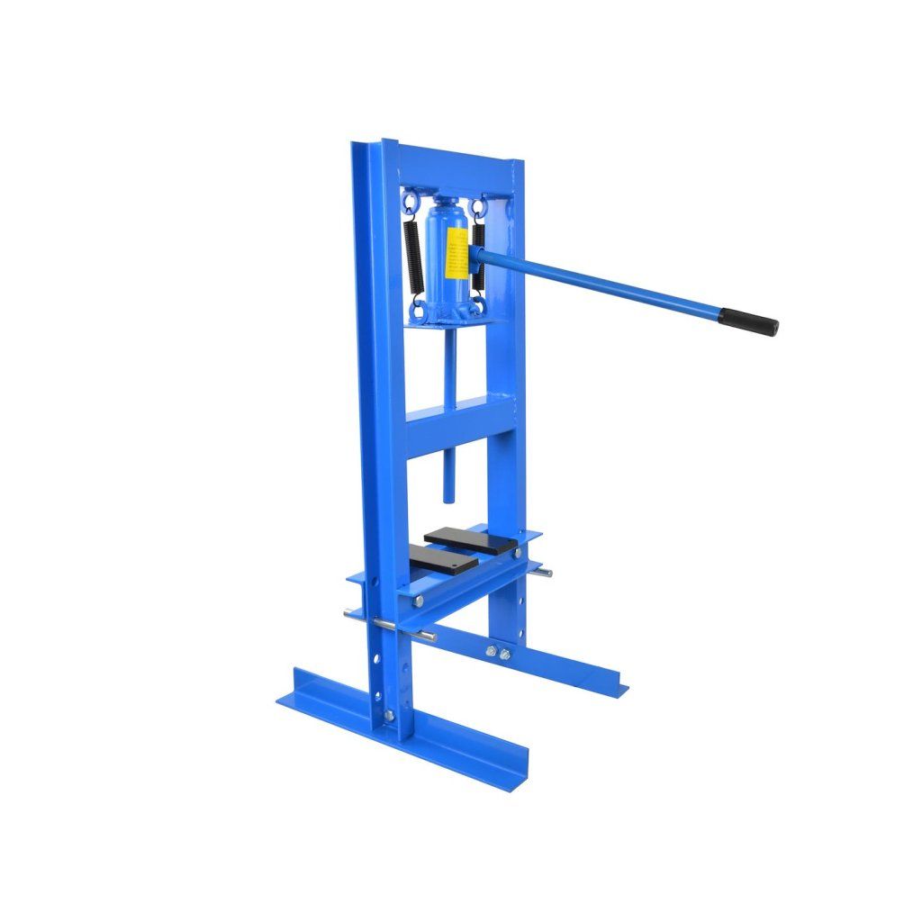 Hydraulický lis s tlakem 8T. Vhodný pro opravárenské a servisní dílny, průmyslové podniky i zemědělství. Rám, který drží celou konstrukci, byl dodatečně zesílen, což zajišťuje odolnost proti mechanickému poškození.