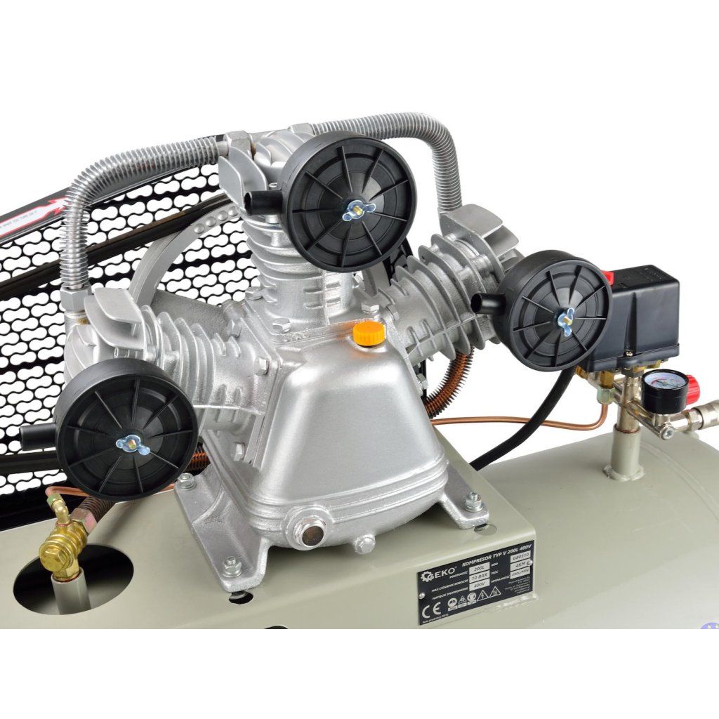 Olejový kompresor s výkonným motorem o výkonu 4 HP a objemem nádrže 200 litrů. Vybaven reduktorem tlaku, který umožňuje nastavení hodnoty tlaku v nádrži. Tři písty umožňují dlouhodobý provoz kompresoru.