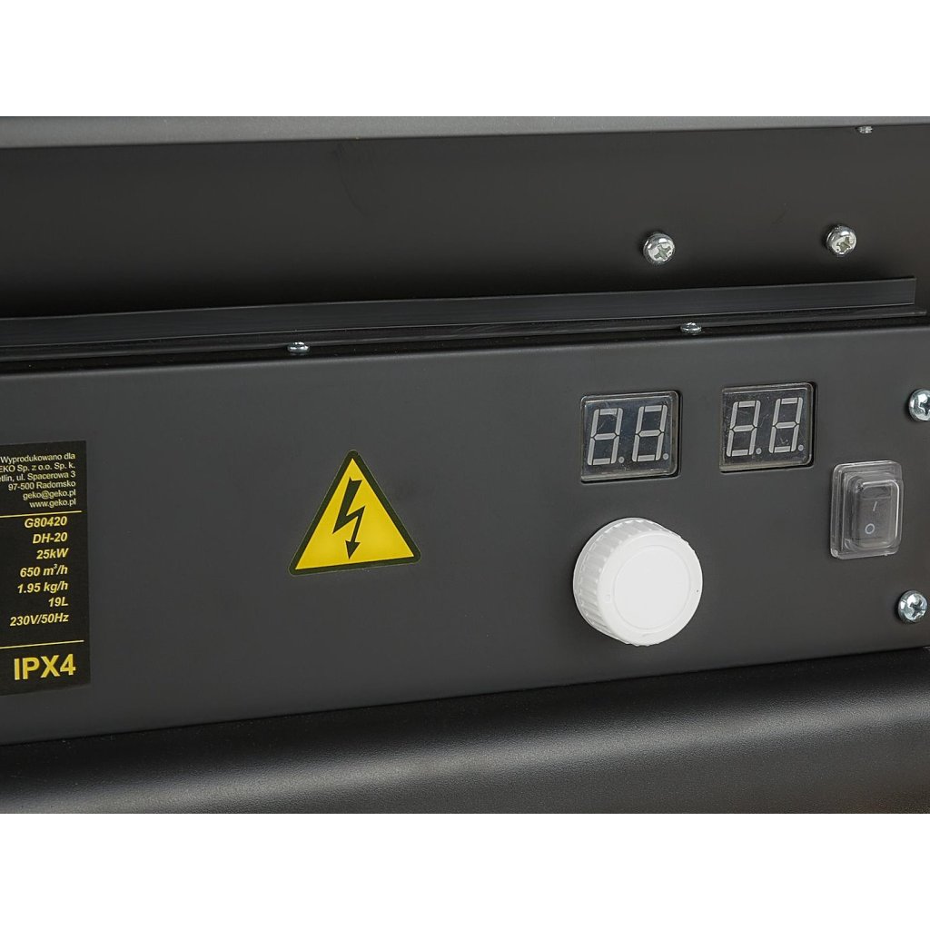 Olejový ohřívač 25000W vybavený termostatem je vysoce účinné zařízení zajišťující stálý přísun velkého množství ohřátého vzduchu. Má digitální displej, který zobrazuje námi zvolenou teplotu ohřevu a teplotu v místnosti. Ohřívač značky GEKO je vysoce výkonné, odolné, bezpečné a zároveň velmi snadno ovladatelné zařízení. Je ideální pro vytápění polootevřených prostor a větraných ploch, jako jsou výrobní haly, sklady atd.
