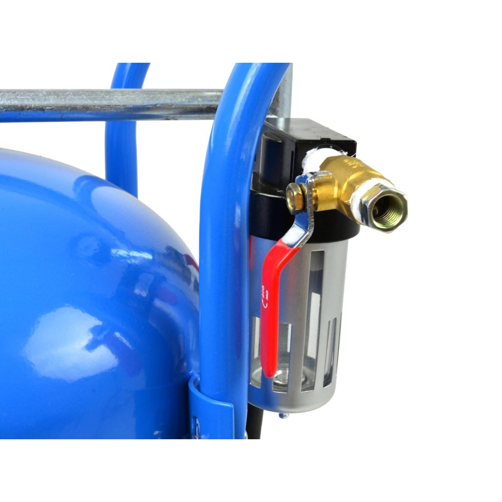 Mobilní tlaková pískovačka (sifonová) o objemu 38 litrů. Ideální pro renovaci, údržbu, práci v karosářských a mechanických servisech a výrobních závodech. Vybavena tryskami a pískovací pistolí, uzavíracím ventilem, manometrem, pískovacím hadicím, nálevkou pro plnění nádrže a ochrannou maskou s plexisklovým sklem.