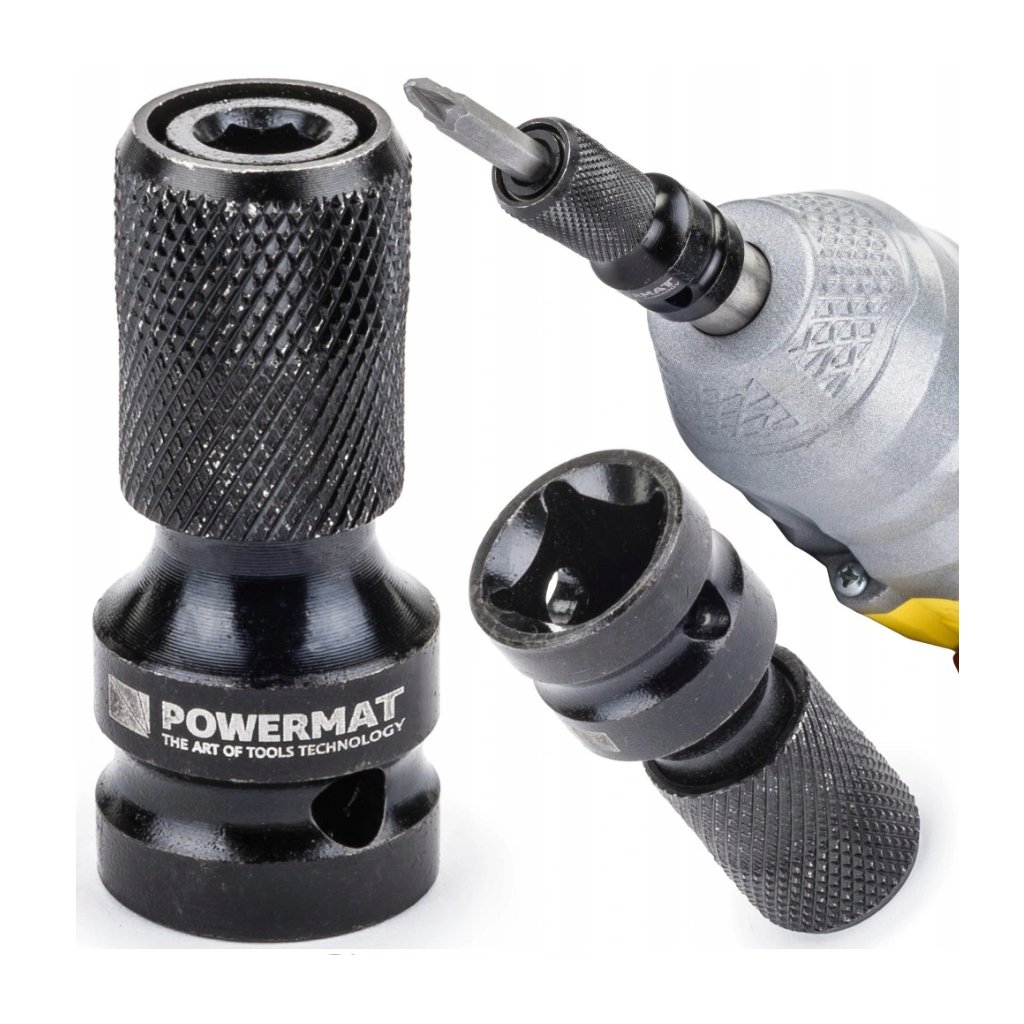 - Univerzálnost: Umožňuje použití nástavců s čtvercovým uchycením na nářadí s 1/4 palcovým HEX upnutím.