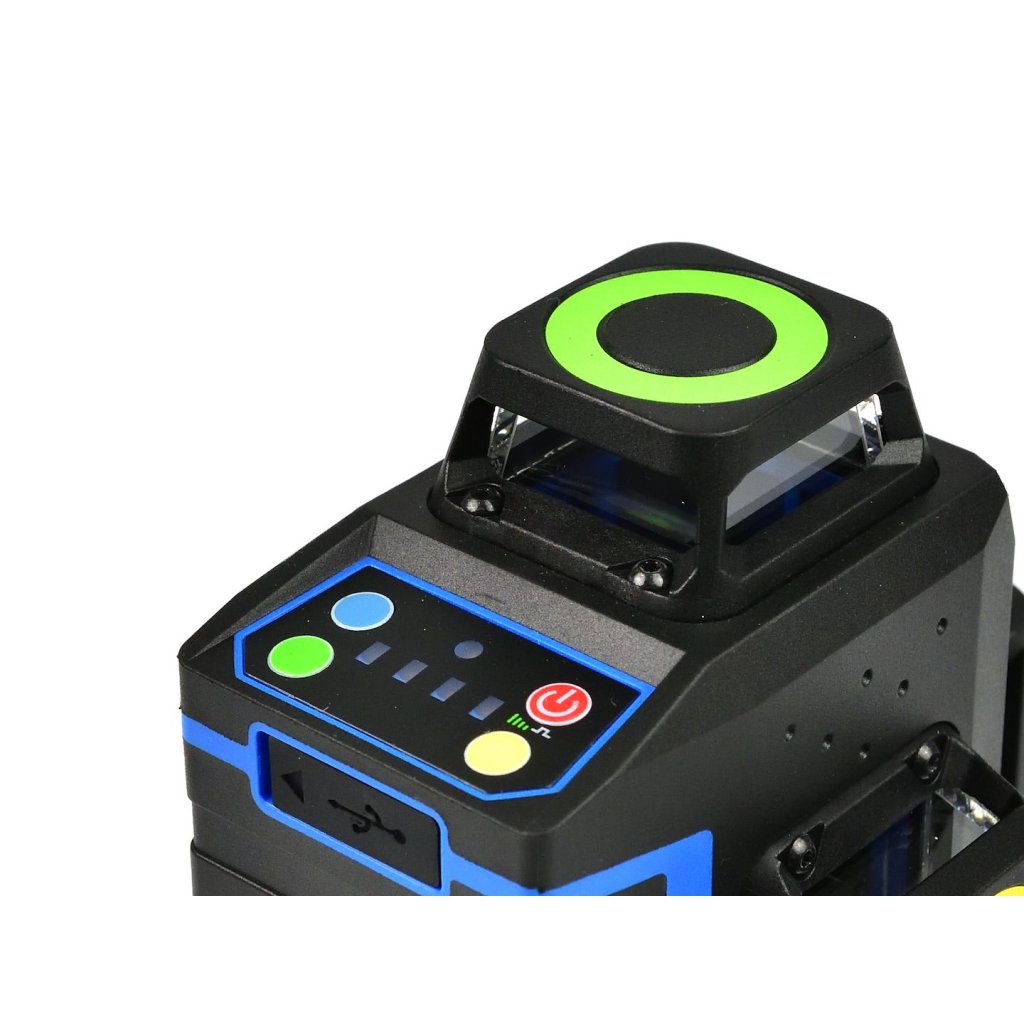 Samonivelační křížový laser T92 360o vyzařující 12 linií, z toho 4 vodorovné a 8 svislých. Zelená barva laserového paprsku zajišťuje velmi dobrou viditelnost bez ohledu na okolní světelné podmínky. Je ideální pro renovační a dokončovací práce, stavebnictví a všude tam , kde je třeba přesně vyznačit vodorovnou a svislou čáru, úhel 90° a také šikmé čáry (po zablokování kyvadla). Kromě toho je možné vypnout libovolný laserový paprsek povýkoní tlačítek na ovládacím panelu (barva tlačítka odpovídá označení každého ze 3 laserů).