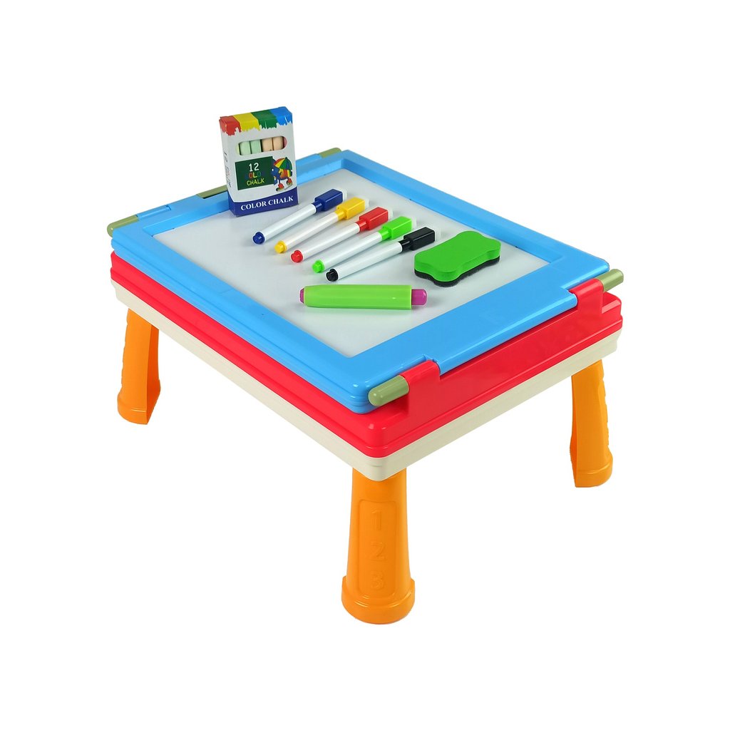 - Křídovou Tabulí a Herním Stolečkem v elegantní modré barvě, která potěší nejen každého malého umělce, ale poslouží i jako vzdělávací pomůcka