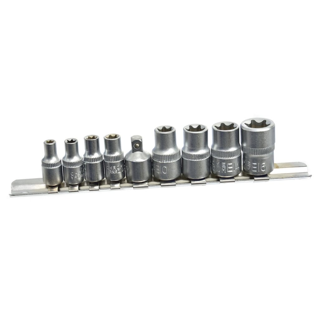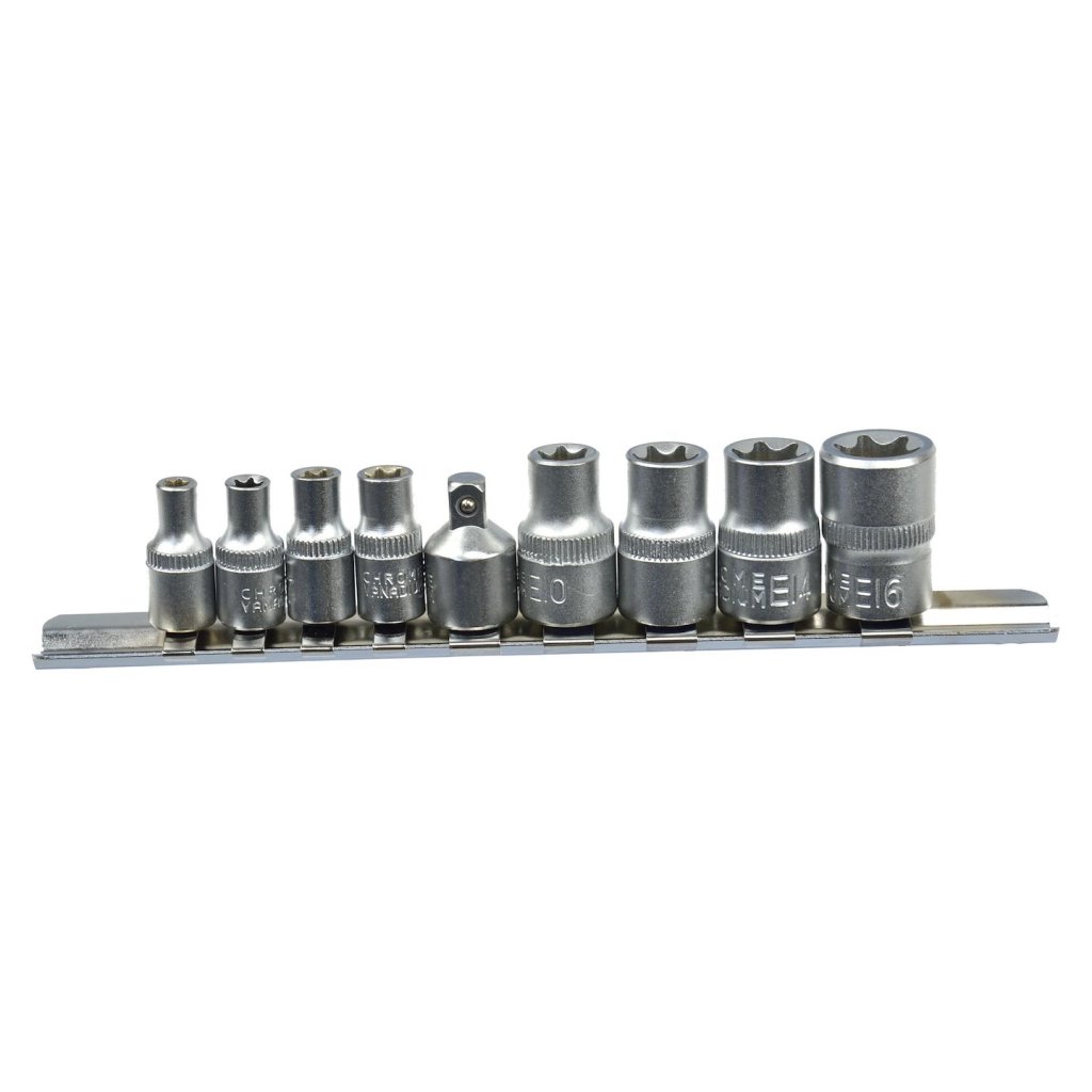 9 ks sada torx klíčů E5-16, 1/4" a 3/8" GEKO