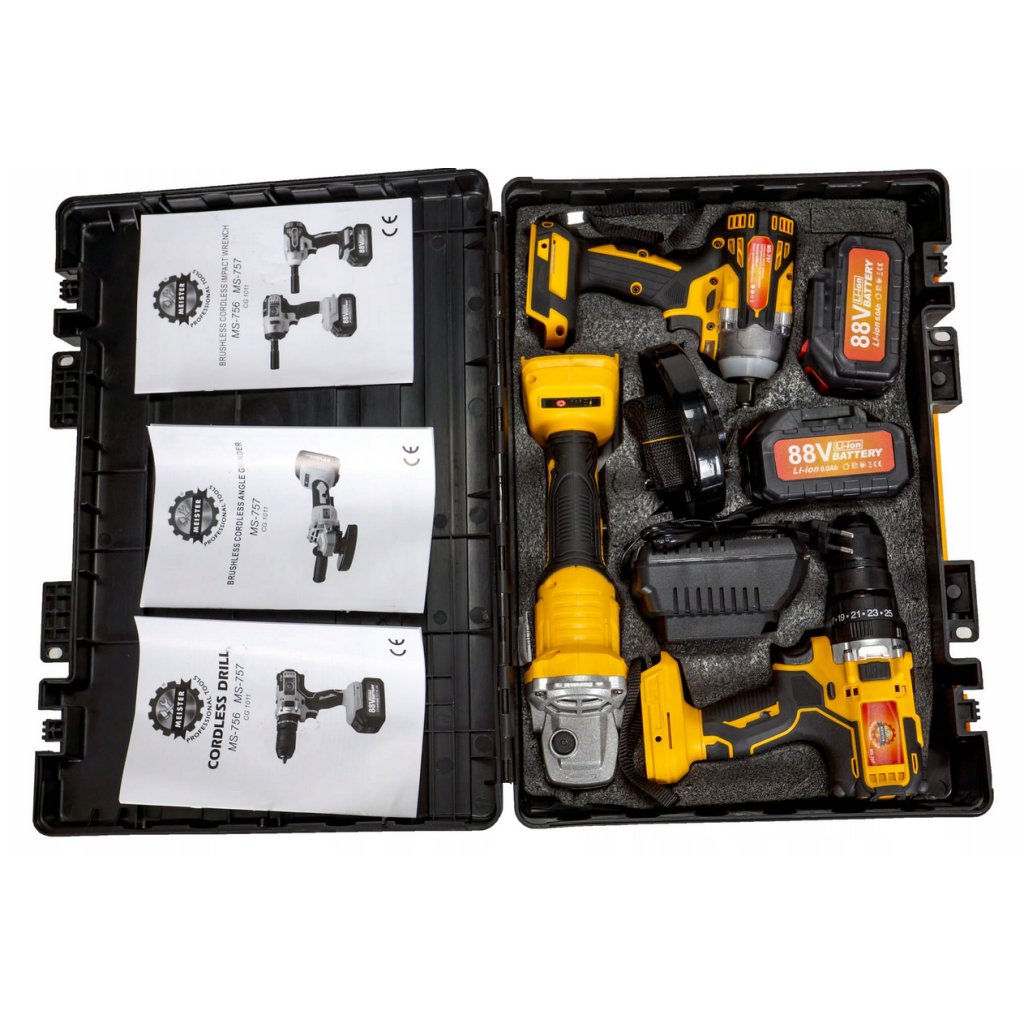 MEISTER SADA AKUMULÁTOROVÉHO NÁŘADÍ je komplexní řešení pro profesionály a kutily v jednom. S vrtačkou, úhlovou bruskou, rázovým utahovákem a četným příslušenstvím poskytuje tato sada všestranné pracovní možnosti v různých průmyslových odvětvích. Díky dvěma 21V Li-Ion akumulátorům s kapacitou 6000mAh a nabíjecí stanici uživatel těží z dlouhé životnosti zařízení a rychlého nabíjení, které umožňuje nepřetržitou práci i v intenzivním režimu. Pouzdro XXXL poskytuje praktický úložný prostor pro všechny součásti sady, což usnadňuje přenášení a organizaci vašeho nářadí. Díky vysoce kvalitnímu zpracování a pevné konstrukci bude nářadí Meister poskytovat spolehlivost a efektivitu v každé aplikaci.