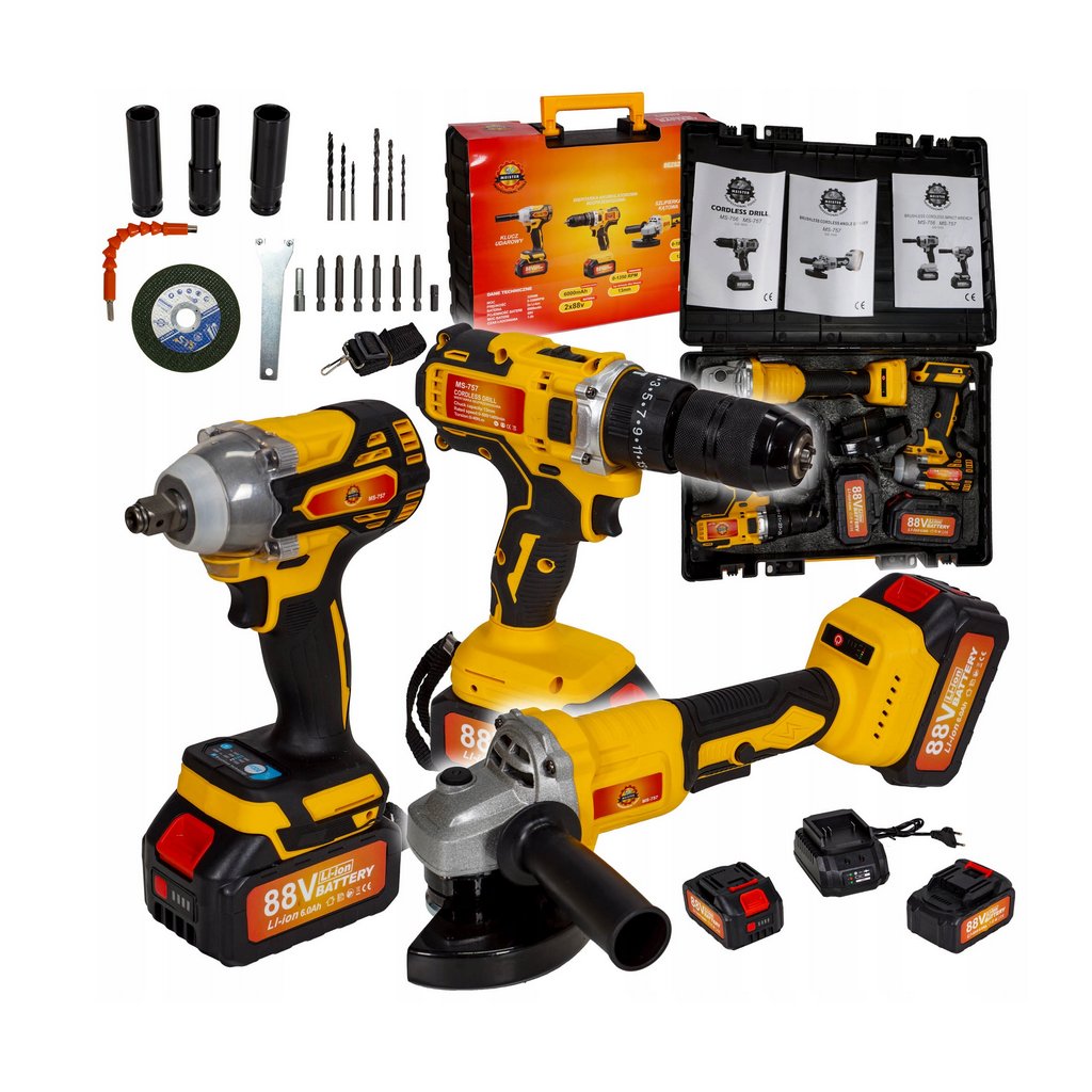 Aku sada 3w1 Vrtačka + Uhlová bruska + Rázový utahovák