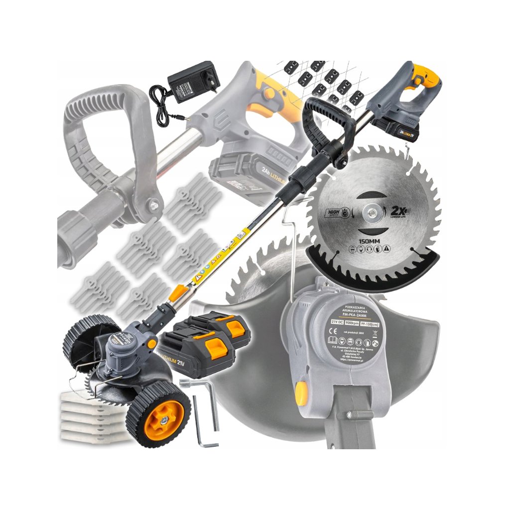Aku strunová sekačka s kolečky 2×21V 2Ah – sada