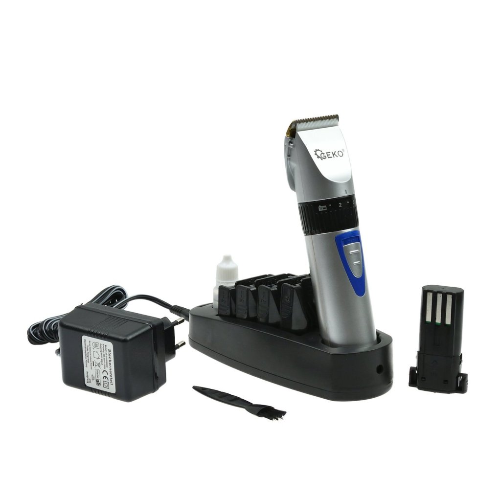 Akumulátorová a síťová strojka 2,4 V určená ke stříhání srsti psů, koček a jiných domácích zvířat.