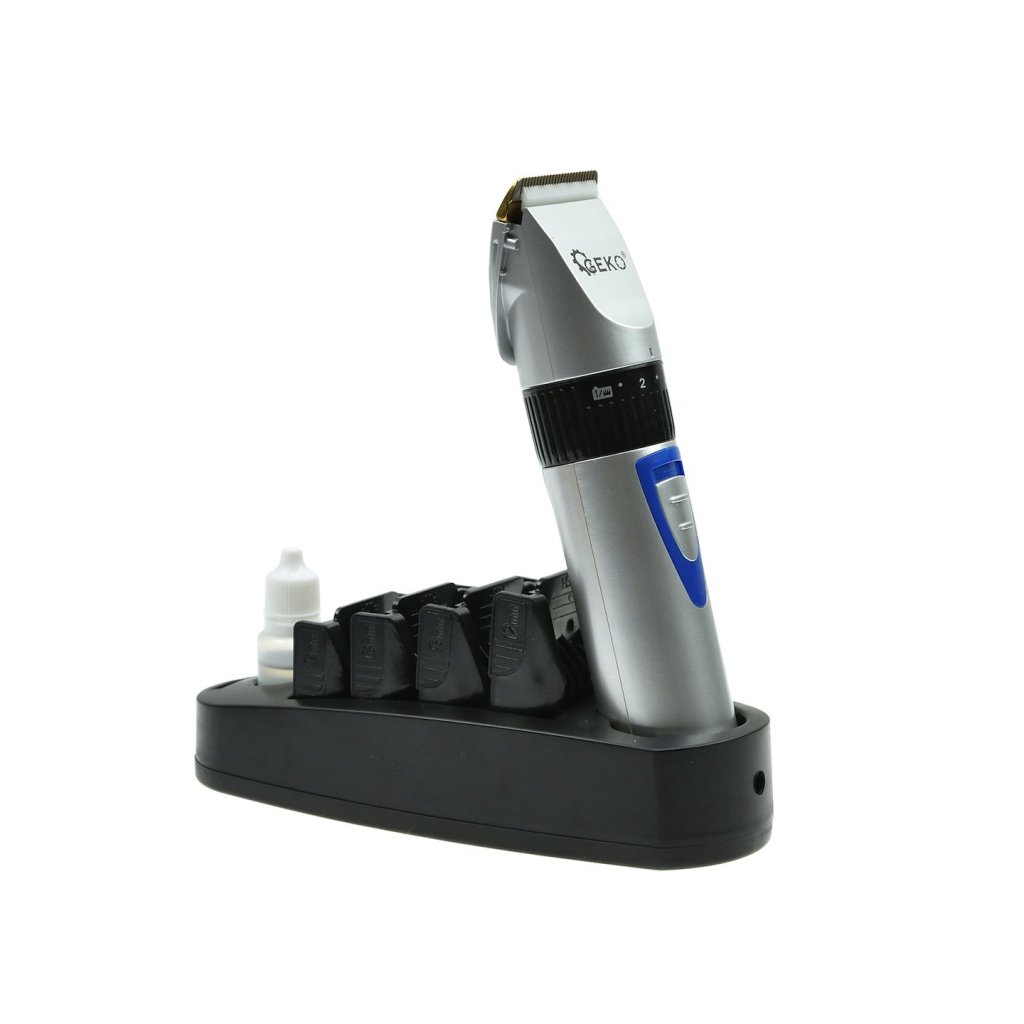Rychlé a přesné stříhání zajišťuje keramická horní čepel a pevná čepel z titanu. Nastavení délky střihu v rozmezí od 0,8 do 2,0 mm se provádí povýkoní otočného knoflíku na hlavě strojku. Sada obsahuje sadu nástavců, které prodlužují délku střihu o dalších 3 mm, 6 mm, 9 mm a 12 mm.