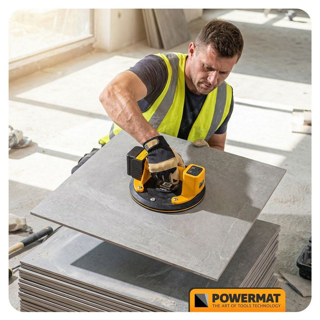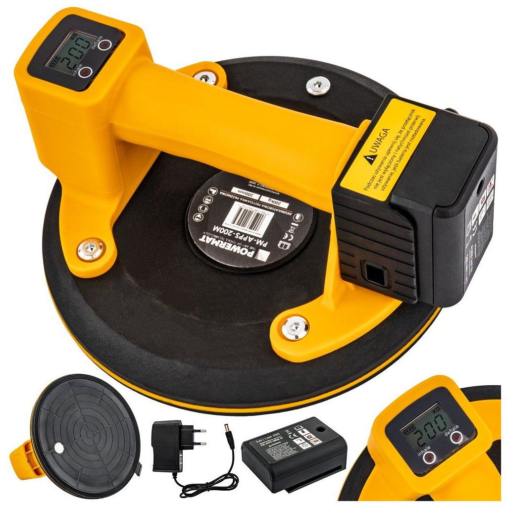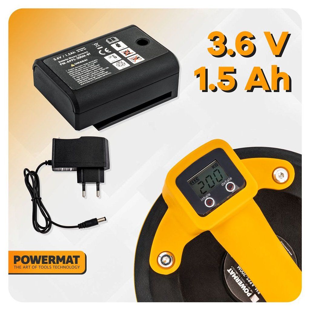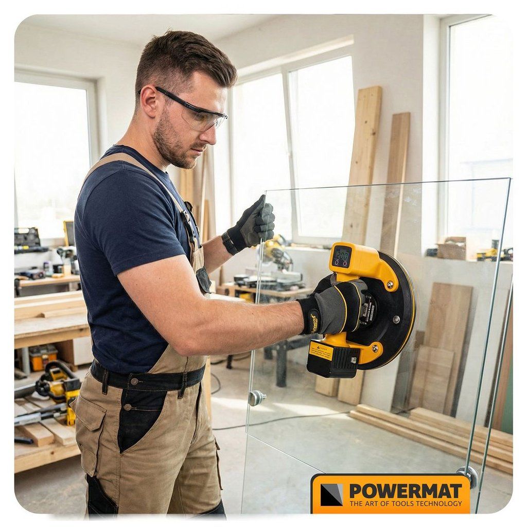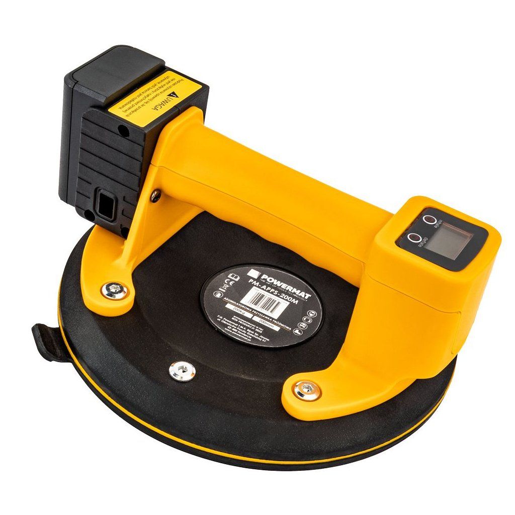 Akumulátorová vakuová přísavka POWERMAT PM-APPS-200M je navržena pro bezpečnou a pohodlnou manipulaci s objemnými a těžkými hladkými materiály, jako jsou skleněné tabule, keramické dlaždice, laminované desky, plechy nebo jiné velké plochy. Díky akumulátorovému napájení funguje bez kabelů a nabízí plnou mobilitu i na místech bez přístupu k elektrické síti.