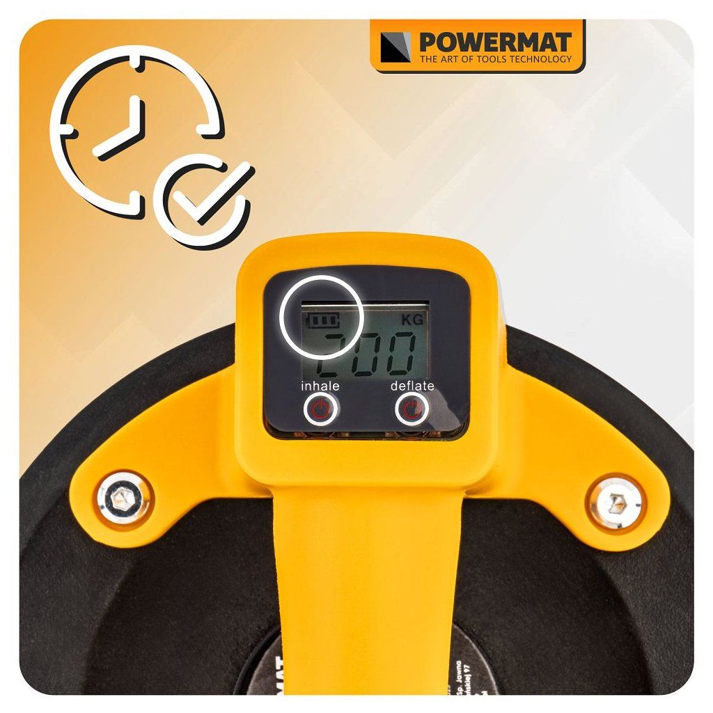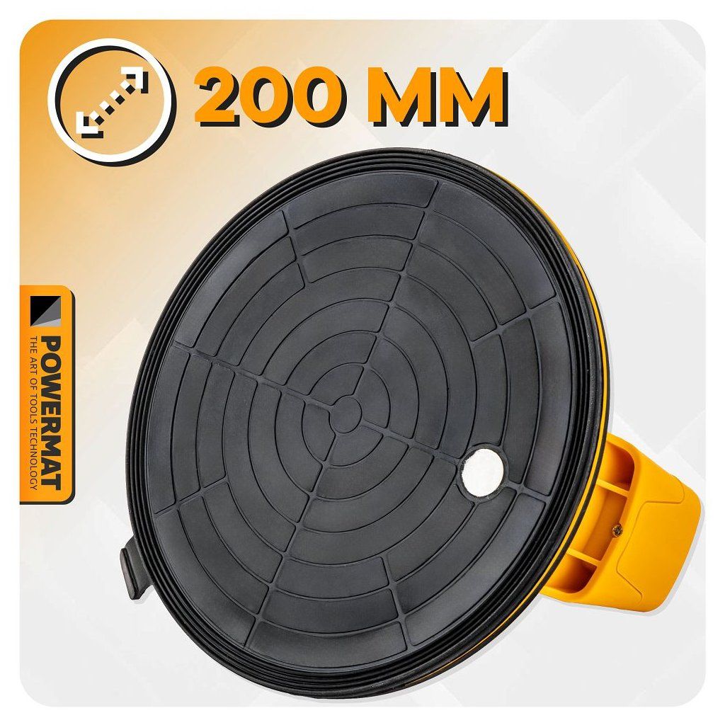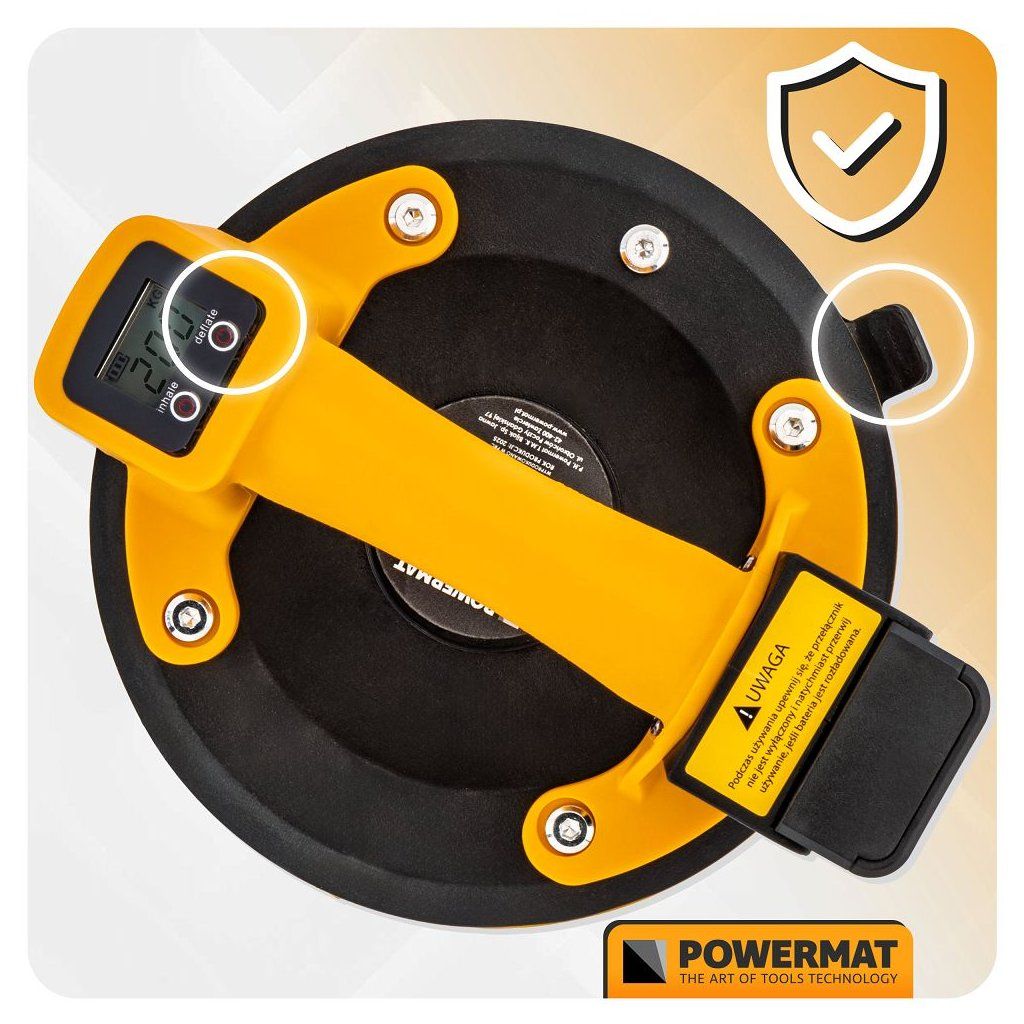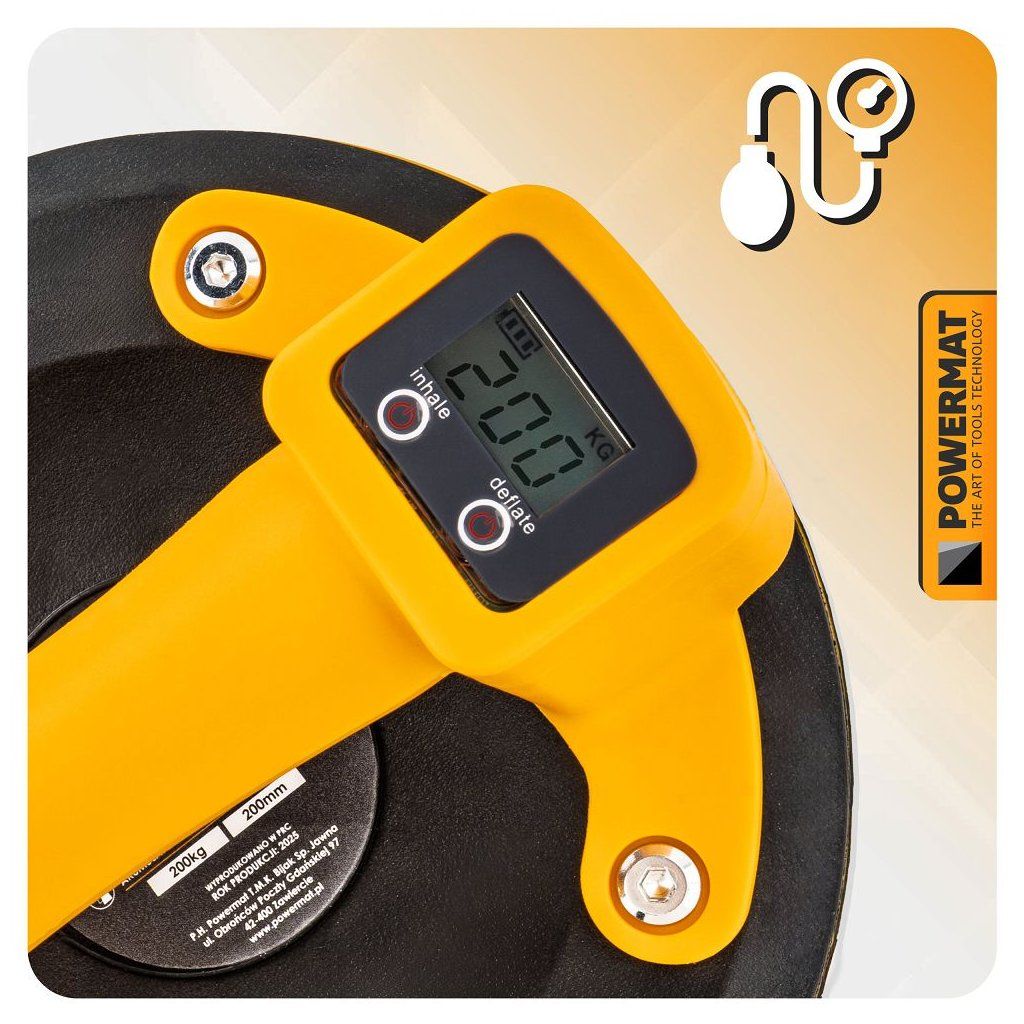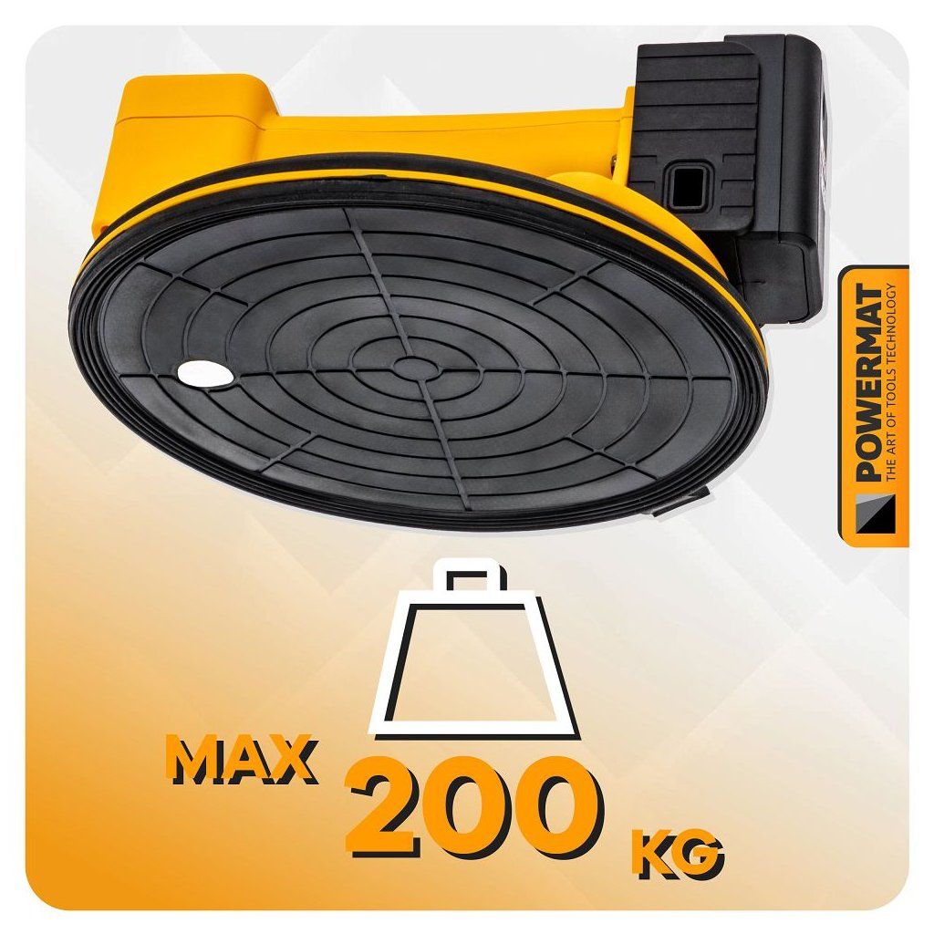 Akumulátorová vakuová přísavka POWERMAT PM-APPS-200M je navržena pro bezpečnou a pohodlnou manipulaci s objemnými a těžkými hladkými materiály, jako jsou skleněné tabule, keramické dlaždice, laminované desky, plechy nebo jiné velké plochy. Díky akumulátorovému napájení funguje bez kabelů a nabízí plnou mobilitu i na místech bez přístupu k elektrické síti.