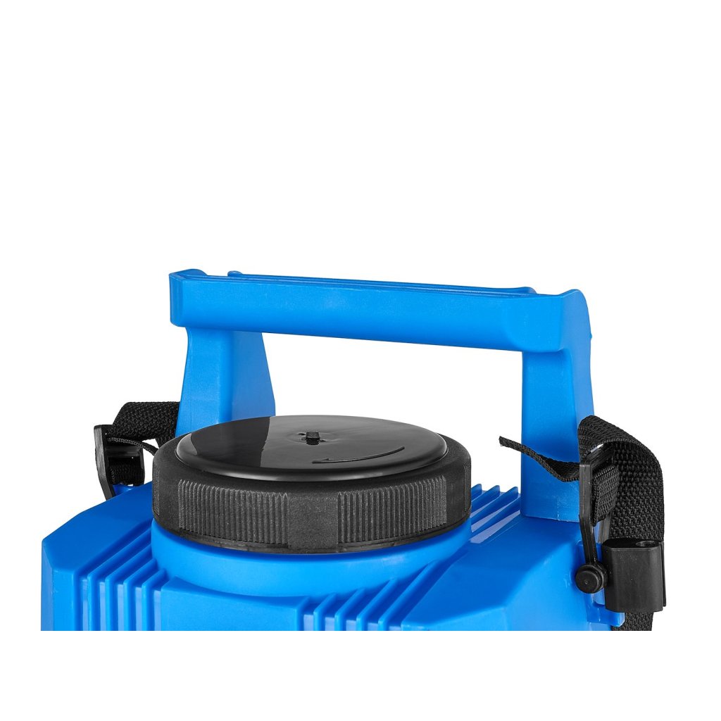 Nádrž o objemu 5 litrů umožňuje delší práci bez nutnosti doplňování kapaliny a ergonomický tvar a ramenní popruh zaručují pohodlí i při dlouhodobém používání. Nářadí je vybaveno otočným knoflíkem pro regulaci otáček, který umožňuje přesné přizpůsobení tlaku typu práce – od jemného postřikování po intenzivní stříkání.