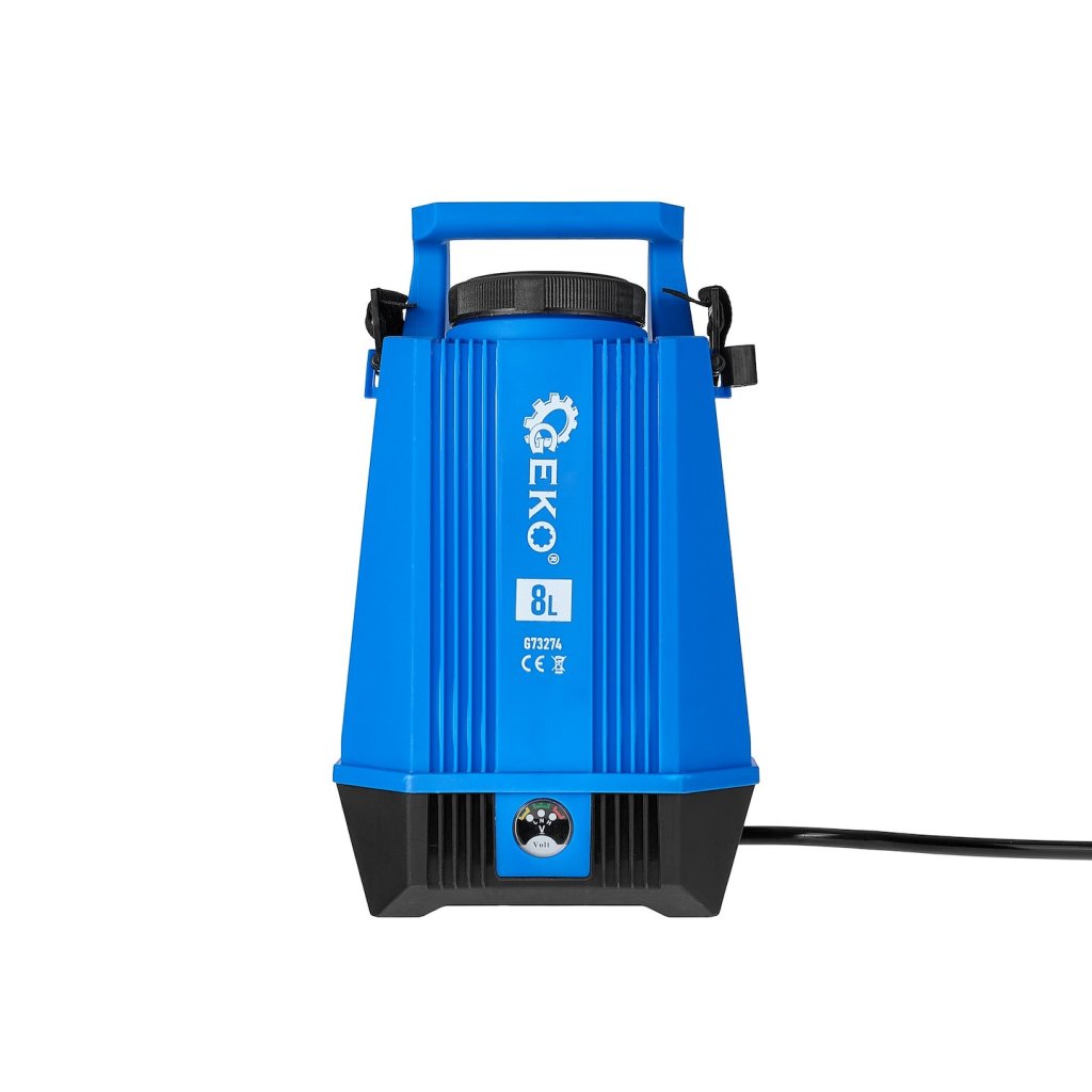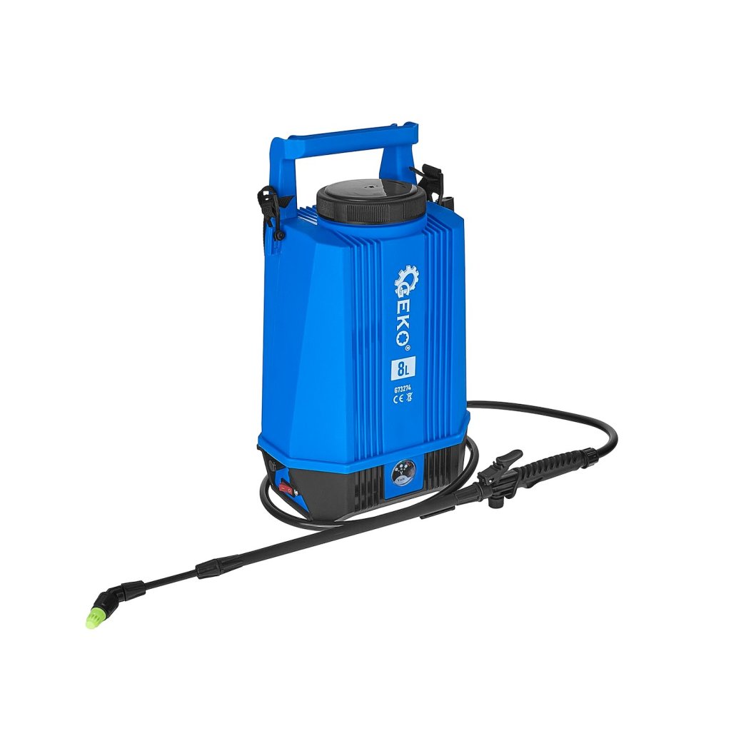 Nádrž o objemu 8 litrů umožňuje delší práci bez nutnosti doplňování kapaliny a ergonomický tvar a ramenní popruh zaručují pohodlí i při dlouhodobém používání. Nářadí je vybaveno otočným knoflíkem pro regulaci otáček, který umožňuje přesné přizpůsobení tlaku typu práce – od jemného postřikování po intenzivní stříkání.