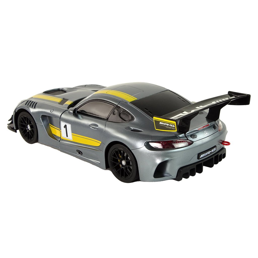 Na zadní části vozidla se nachází charakteristický spoiler, který podtrhuje sportovní charakter auta Tato hračka je vyrobena v měřítku 1:14, což znamená, že je o něco menší než skutečný Mercedes-AMG GT3, ale zachovává si mnoho detailů a proporcí, aby co nejvěrněji odpovídala vzhledu originálu