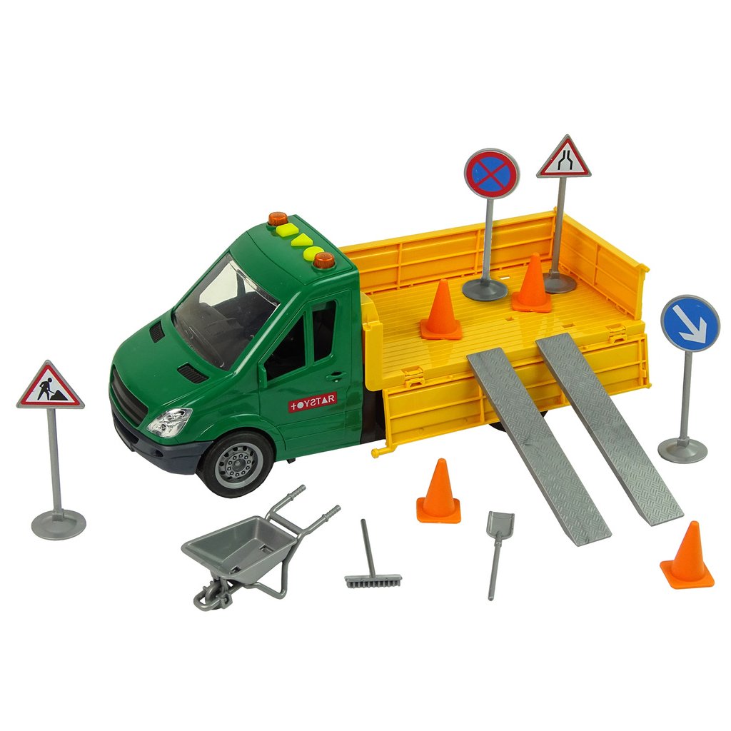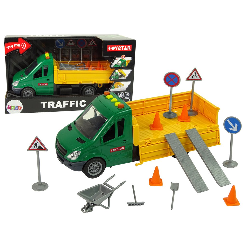 - Sada zahrnuje vše potřebné pro simulaci oprav na silnici, včetně dopravních značek, příslušenství a podvozku pro mimořádný zážitek z hraní