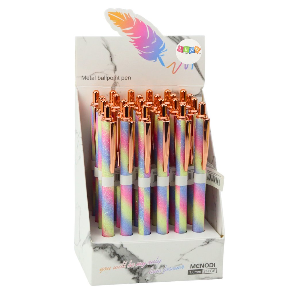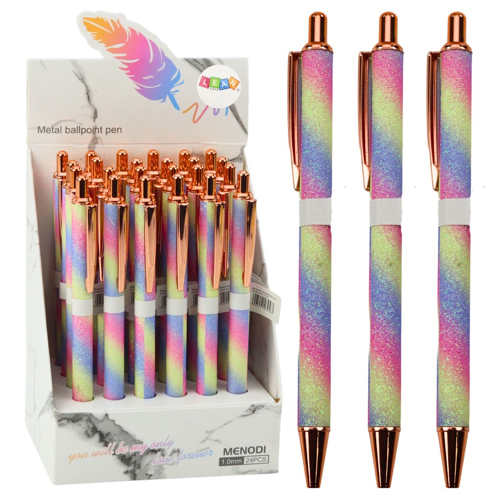 - Automatické kovové třpytivé pero s modrou náplní je výjimečný psací doplněk, který spojuje eleganci s moderním designem