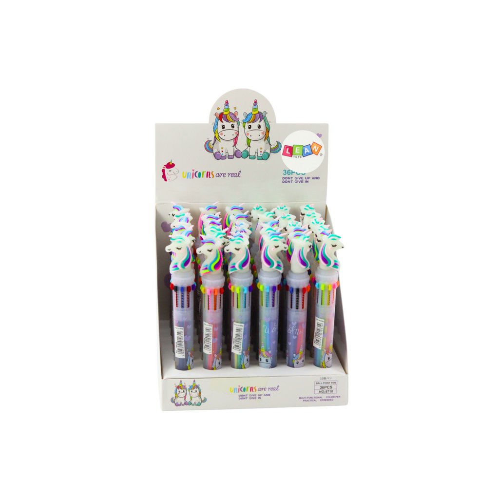 Automatické vícebarevné pero Jednorožec - 10 barev Mix je skvělým spojením zábavy a praktičnosti, které nabídne vašim dětem až 10 barev v jednom psacím nástroji.