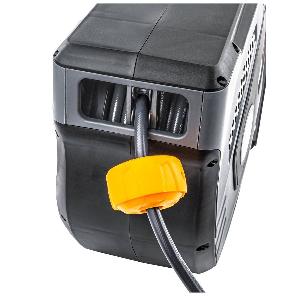 Tento navíjecí buben s 20metrovou hadicí je ideálním řešením pro dílny, autoservisy i domácí garáže. Umožňuje pohodlnou práci s pneumatickým nářadím, udržuje pracoviště přehledné a díky automatickému navíjení zamezí zamotání hadice.