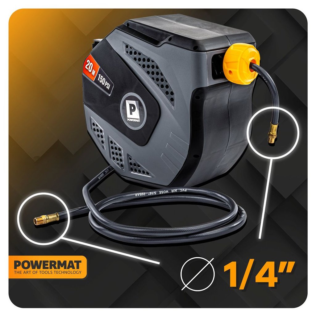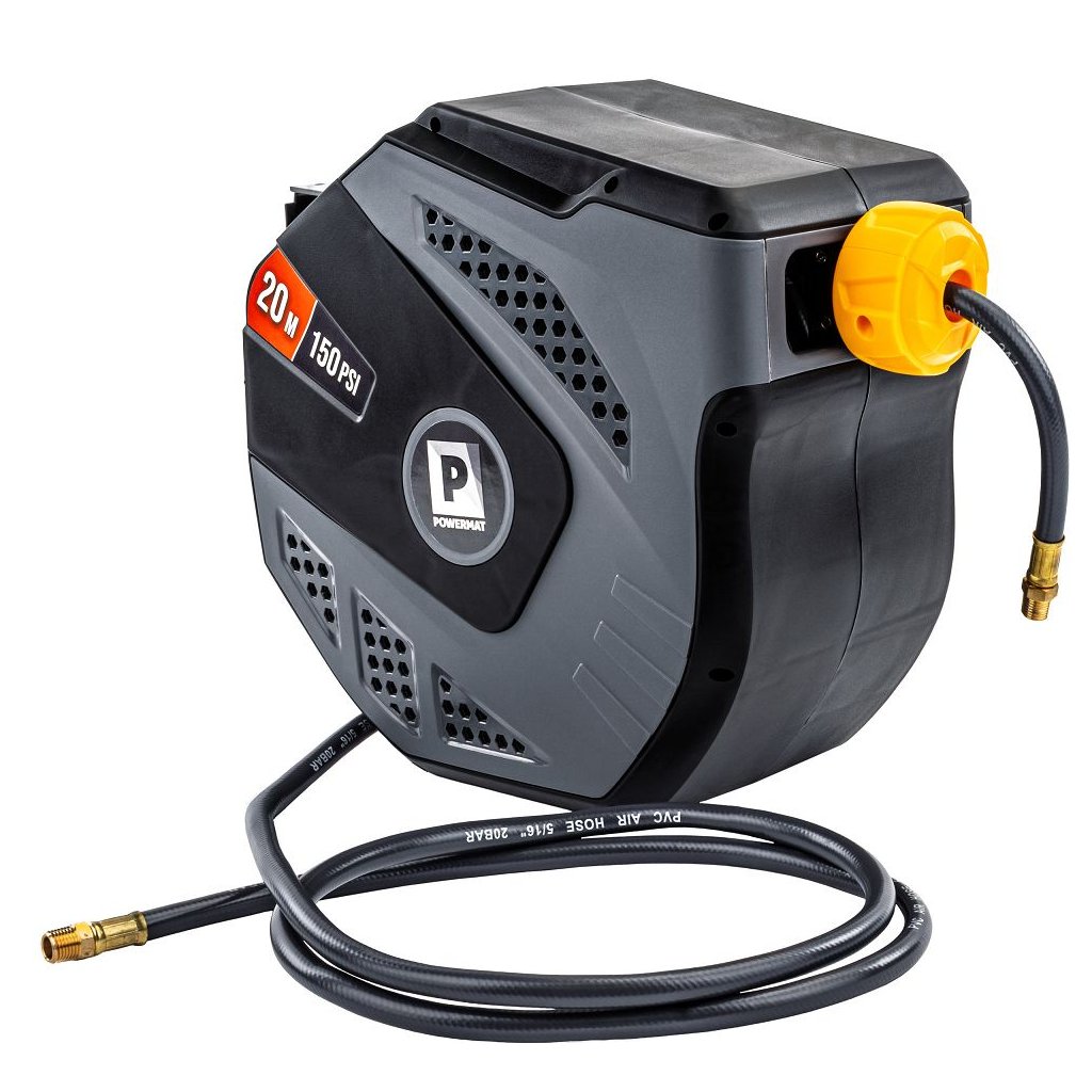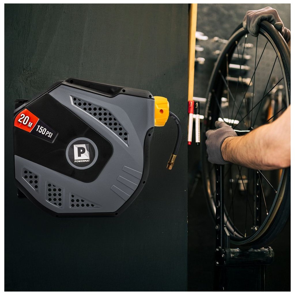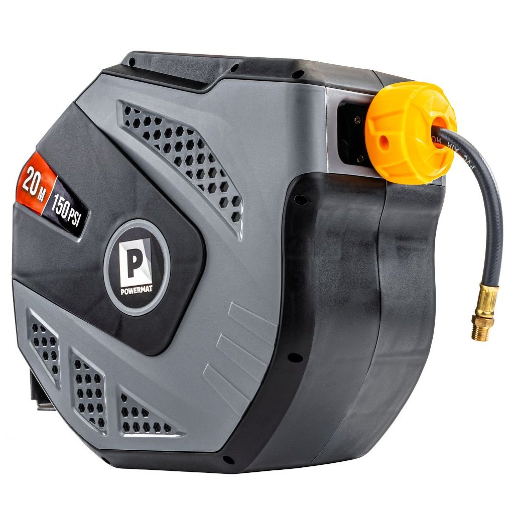 Navíjecí buben PowerMat PM-ABNW-20MN spojuje dlouhý pracovní dosah, automatické navíjení, odolnou konstrukci a snadnou montáž. Je ideální pro profesionální servisy i domácí dílny, protože urychluje práci, eliminuje zamotané hadice a zvyšuje bezpečnost pracoviště.