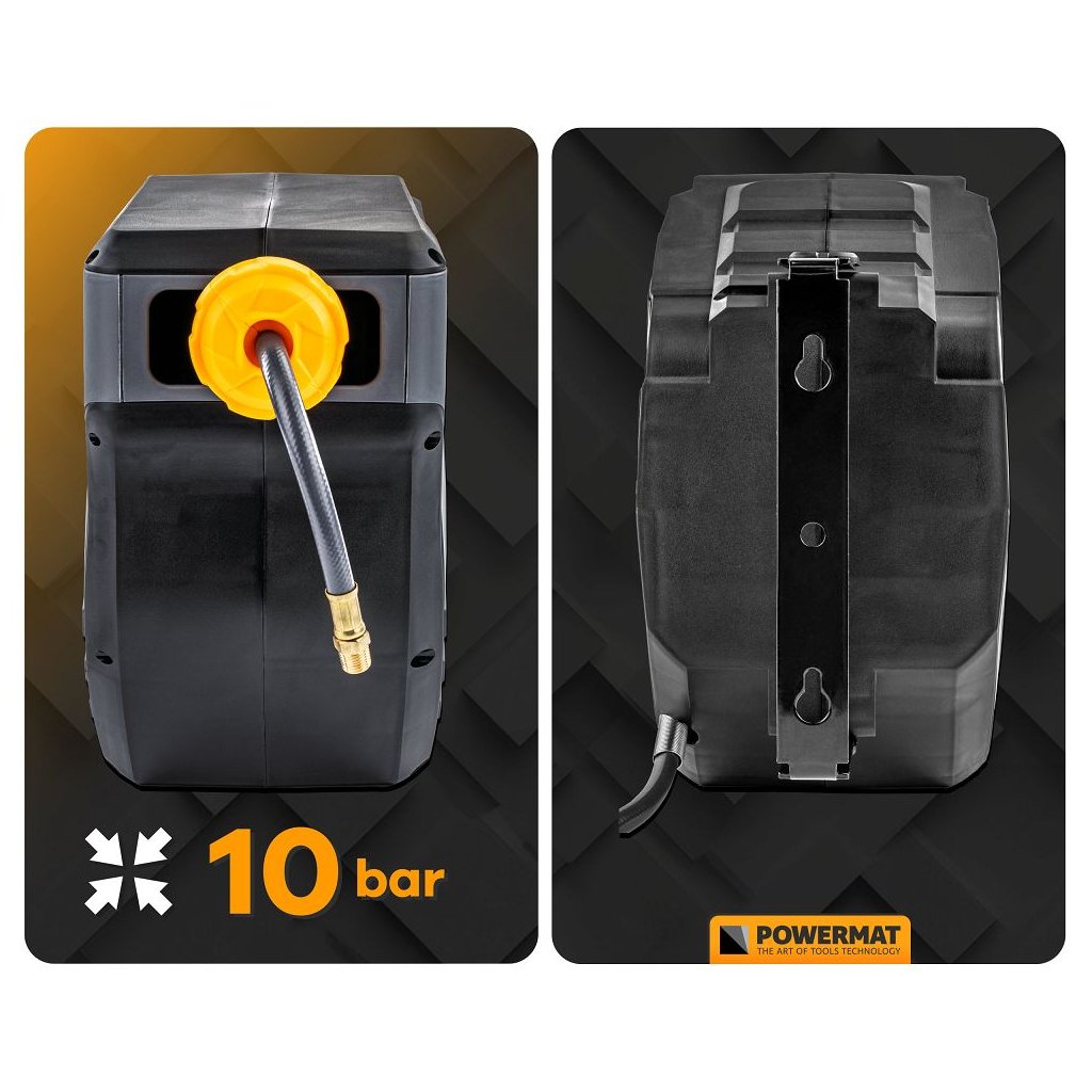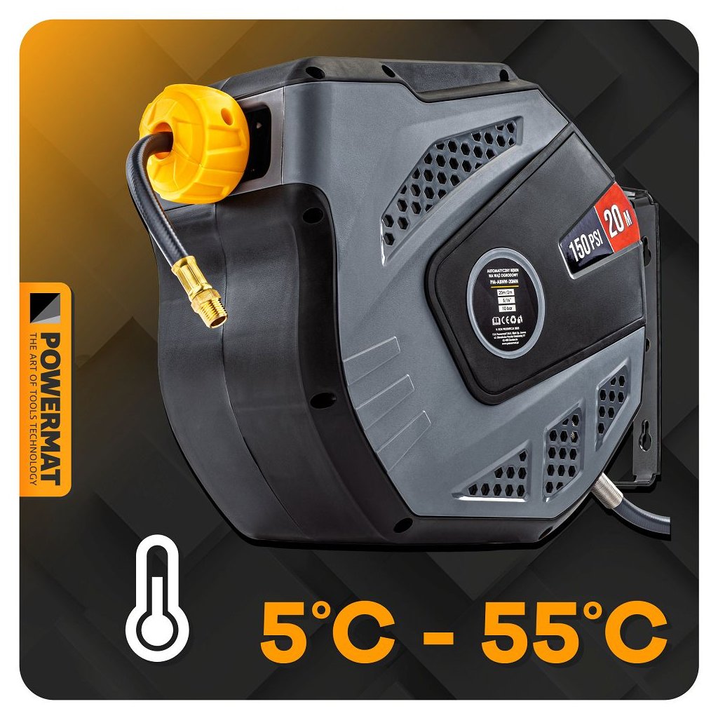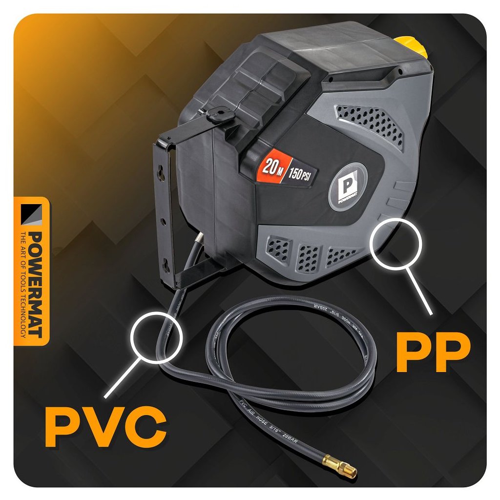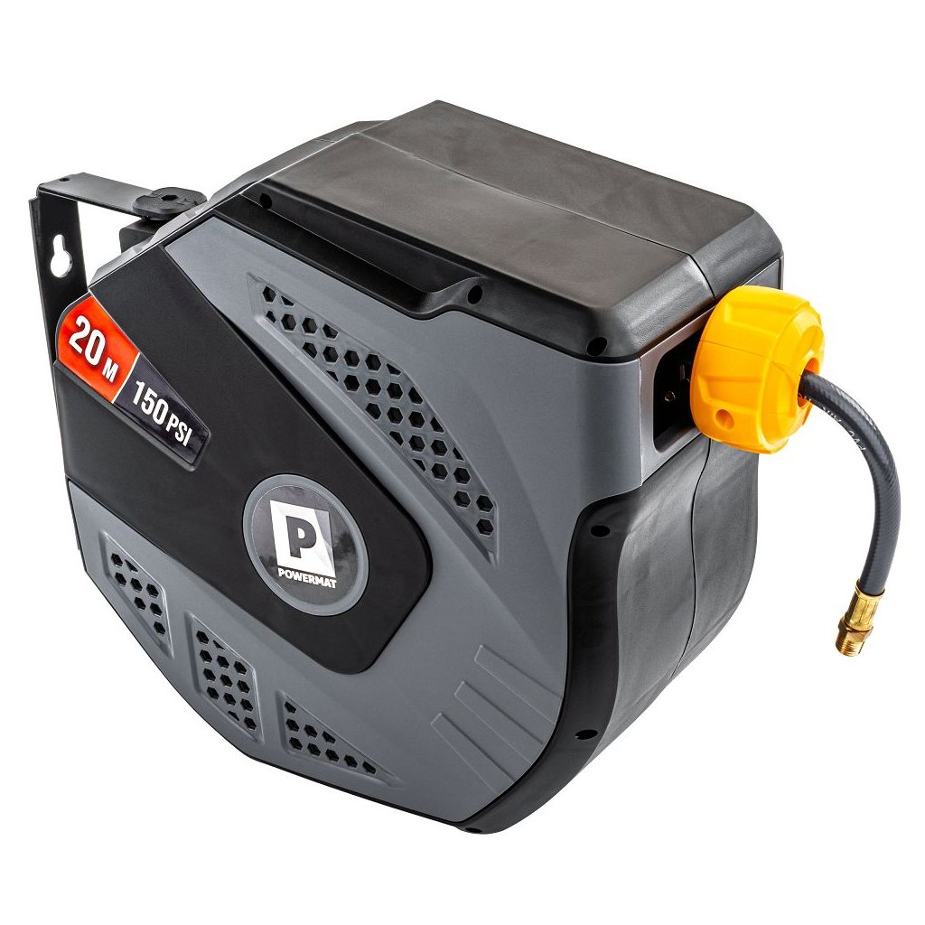 Navíjecí buben PowerMat PM-ABNW-20MN spojuje dlouhý pracovní dosah, automatické navíjení, odolnou konstrukci a snadnou montáž. Je ideální pro profesionální servisy i domácí dílny, protože urychluje práci, eliminuje zamotané hadice a zvyšuje bezpečnost pracoviště.