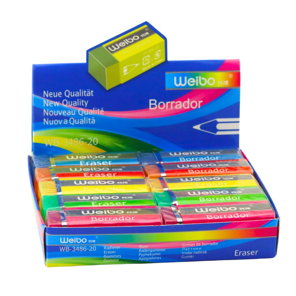 Barevná gumovací guma Weibo WB-3486-20 je praktickým a estetickým doplňkem pro každou školní nebo kancelářskou sadu.