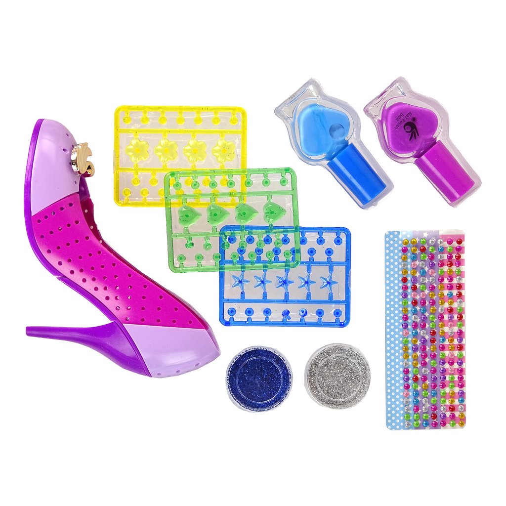 - Vytvářejte vlastní umělecká díla pomocí plastového střevíčku připraveného pro jedinečné projekty, laky na nehty a krystalky pro zkrášlení nehtů, a lesklých třpytek, které dodají každému projektu potřebný třpyt