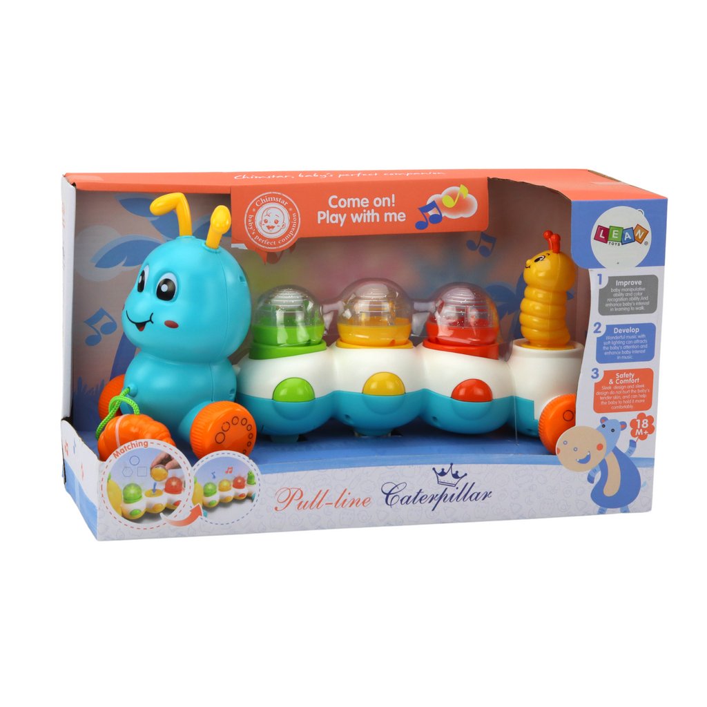 - Trakce na tahání s barevnými světly a zvuky Barevná housenka na šňůrce