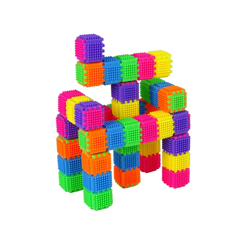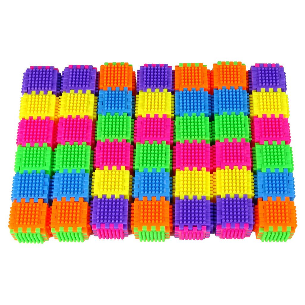 Barvy přitahují pozornost a pomáhají soustředit se. Sada obsahuje 6 barev: růžovou, zelenou, modrou, oranžovou, fialovou a žlutou. Kostky mají tvar vafle s výstupky, které navíc stimulují hmat. Jsou velmi lehké a super odolné. Vyrobeno z plastu.
