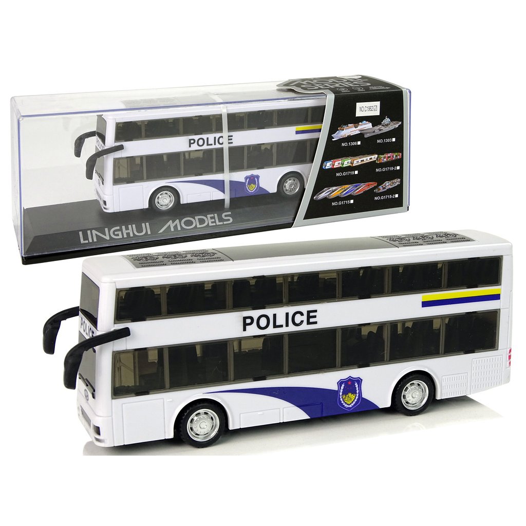 - Objevte kouzlo Bílého Dvoupatrového Policejního Autobusu se Zvukovými Efekty!