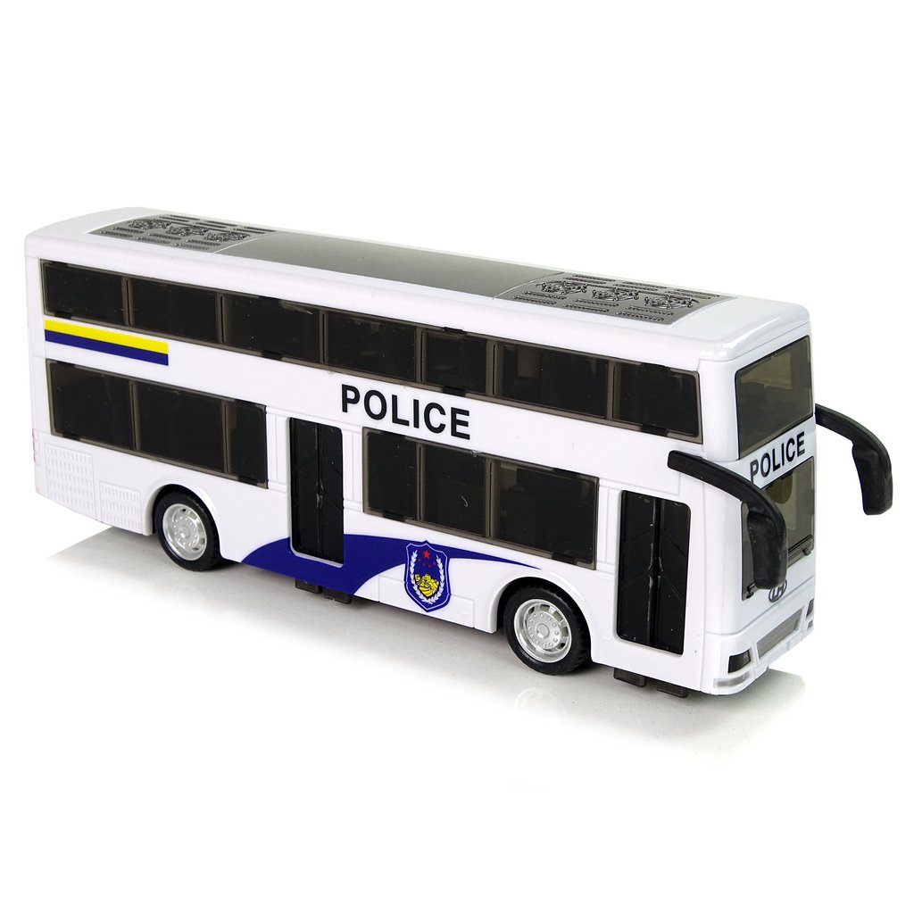 Bílý Dvoupatrový Policajní Autobus se Zvukovými Efekty