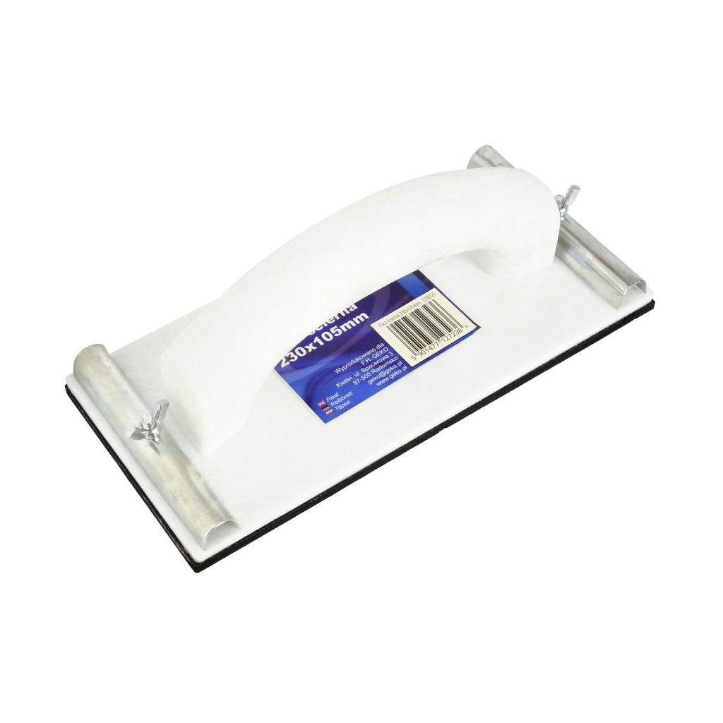 Blok na brusný papír o rozměrech 230x105 mm vyrobený z vysoce kvalitního plastu. Plocha, ke které přiléhá papír, je pokryta mikrogumou zlepšující přilnavost papíru. Brusný materiál se upevňuje povýkoní dvou kovových svorek utahovaných motýlkovou maticí.