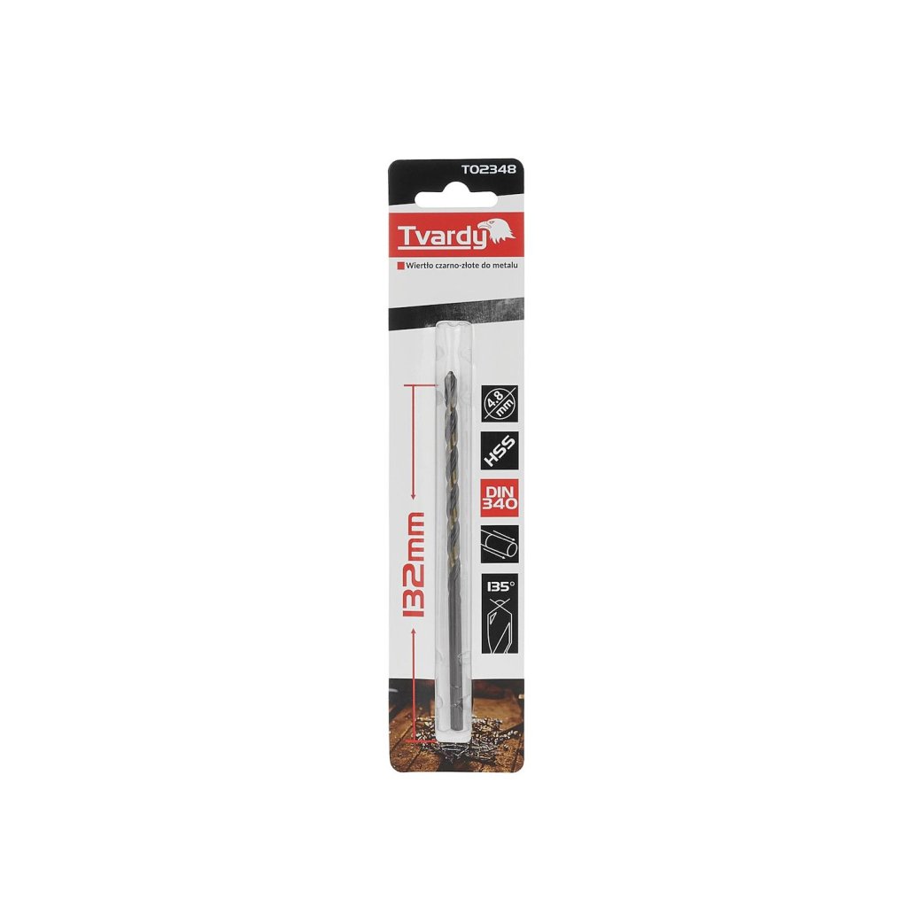 Prodloužené vrtáky do kovu, zlaté a černé, vyrobené z rychlořezné oceli M2 HSS, potažené vrstvou TiN (nitrid titanu). Vrtáky splňují normu DIN 340. Válcové držadlo.