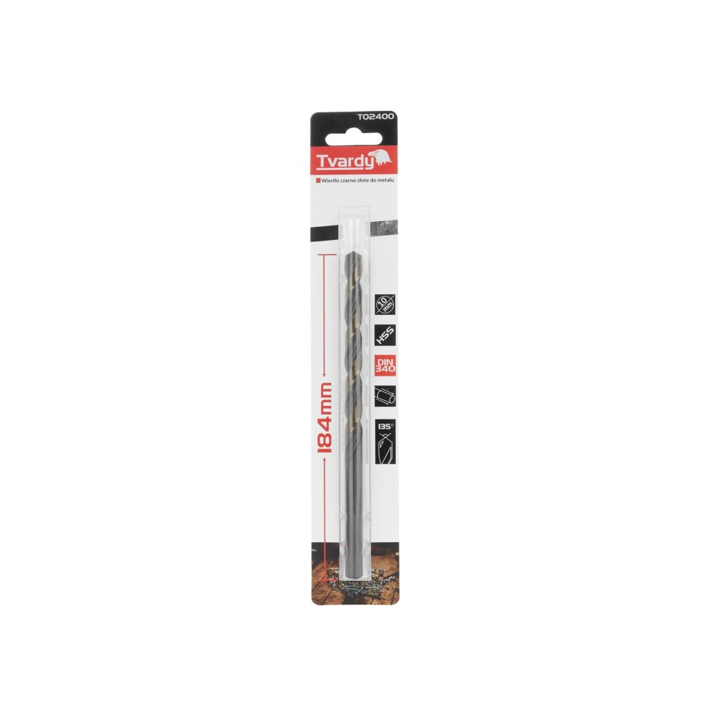 Prodloužené vrtáky do kovu, zlaté a černé, vyrobené z rychlořezné oceli M2 HSS, potažené vrstvou TiN (nitrid titanu). Vrtáky splňují normu DIN 340. Válcové držadlo.