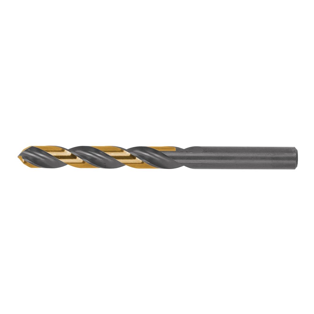 Zlaté a černé vrtáky do kovu vyrobené z rychlořezné oceli 4341 HSS, pokryté vrstvou TiN (nitrid titanu). Vrtáky jsou v souladu s normou DIN 338. Válcové držadlo.