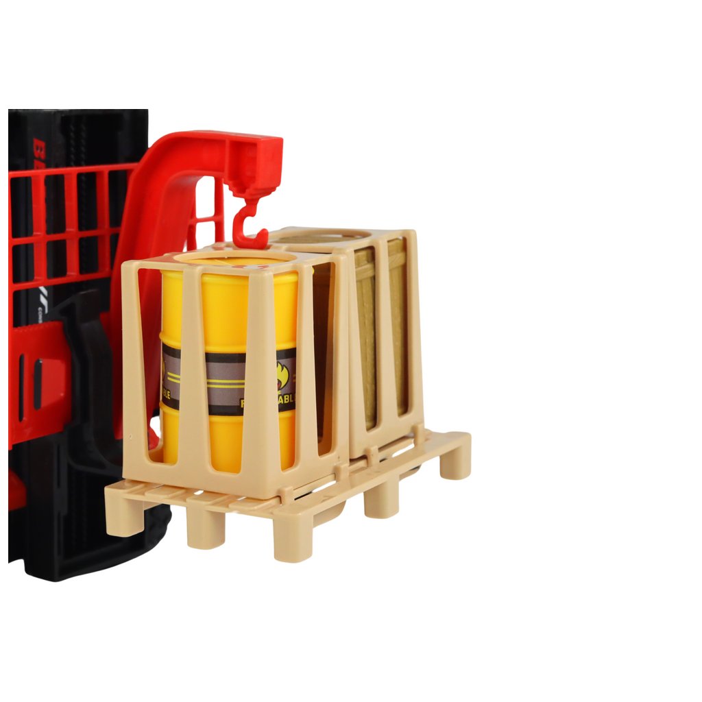 Červený Vysokozdvižný Vozík 1:16 Pohyblivé Vidlice Zvuky Světla