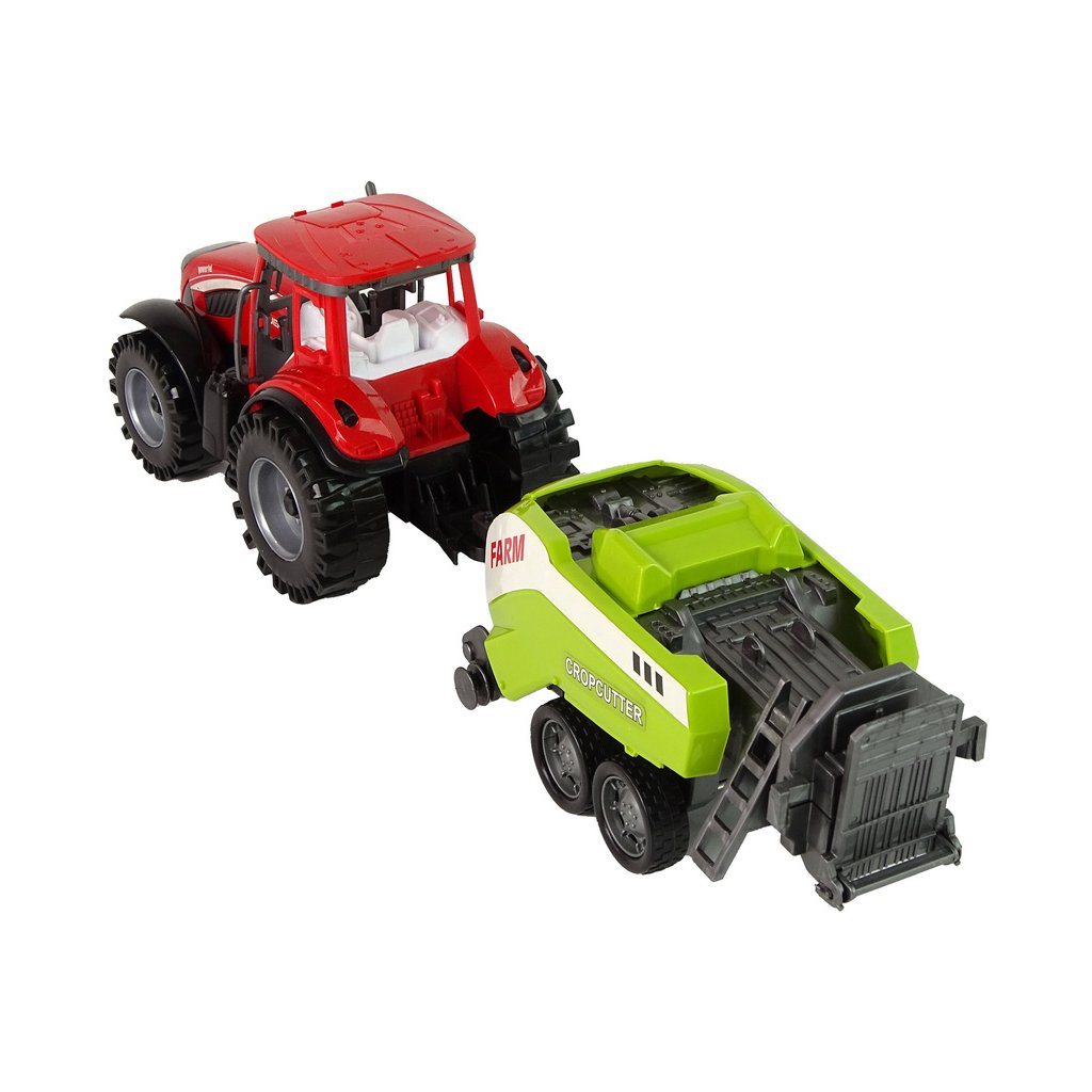 - Červený traktor s zeleným secím strojem a frikčním pohonem Zábavné zemědělské hračky jsou skvělou alternativou pro děti, které se zajímají o práci na farmě