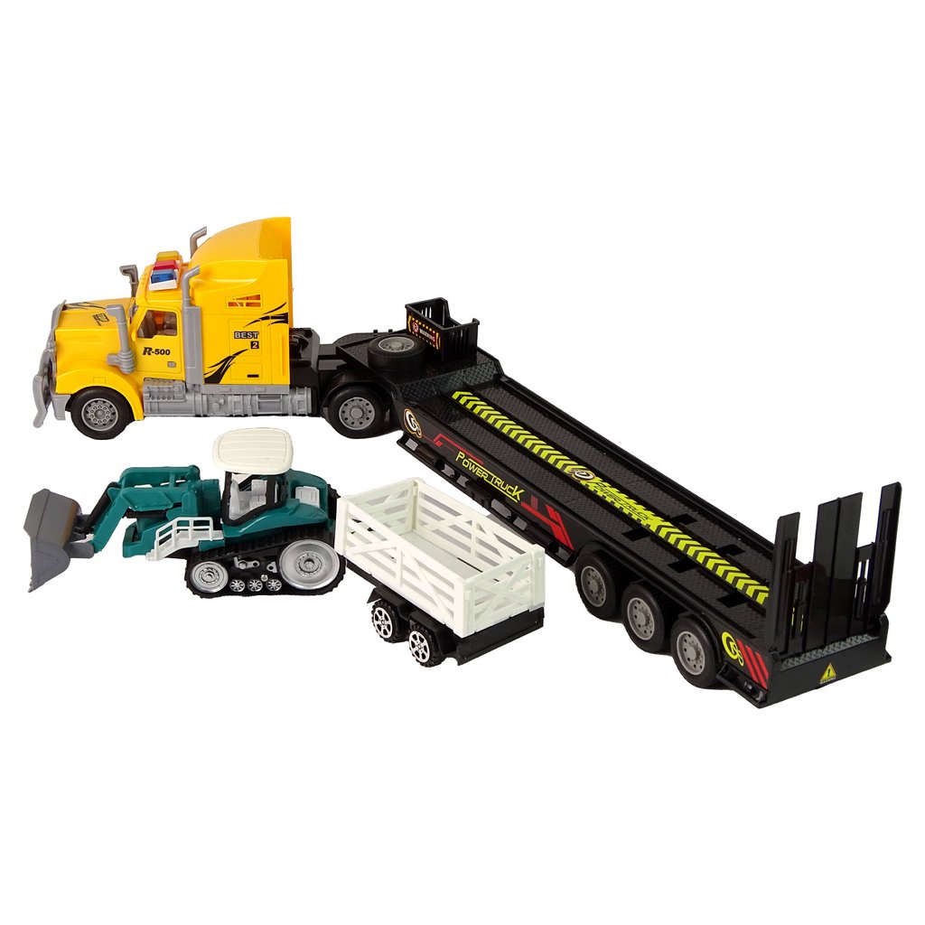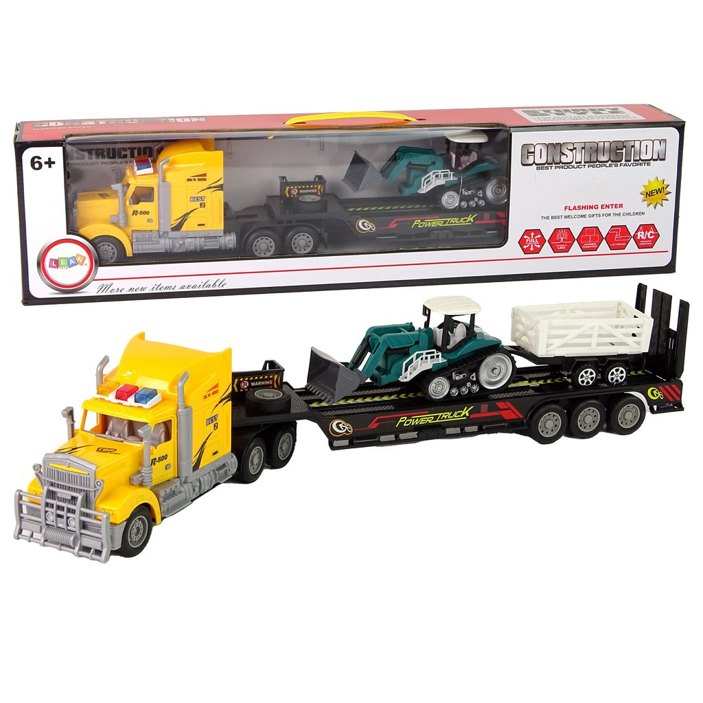 SADA VOZIDEL ŽLUTÝ NÁKLADNÍ AUTO S ODTAHOVOU SLOUŽBOU 60 CM + RYCHLÁ EXCAVÁTOR S PŘÍVĚSEM Dálkově ovládaná sada vozidel se žlutým nákladním autem a odtahovkou o délce až 60 cm je ideální volbou pro malé milovníky motorismu a velkých strojů.