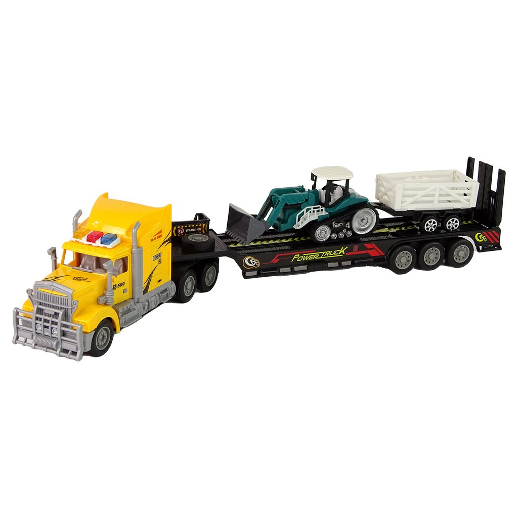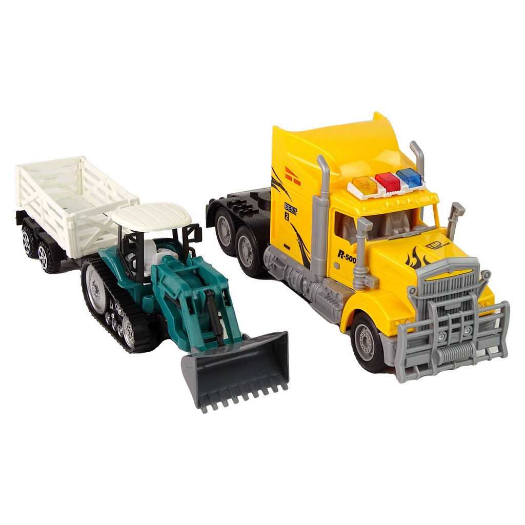 Hlavním prvkem sady je žlutý nákladní vůz s barevnými světly na střeše a možností připojení velkého odtahového vozu, na kterém lze přepravovat další vozidla Součástí sady je také pásový bagr s odnímatelným přívěsem