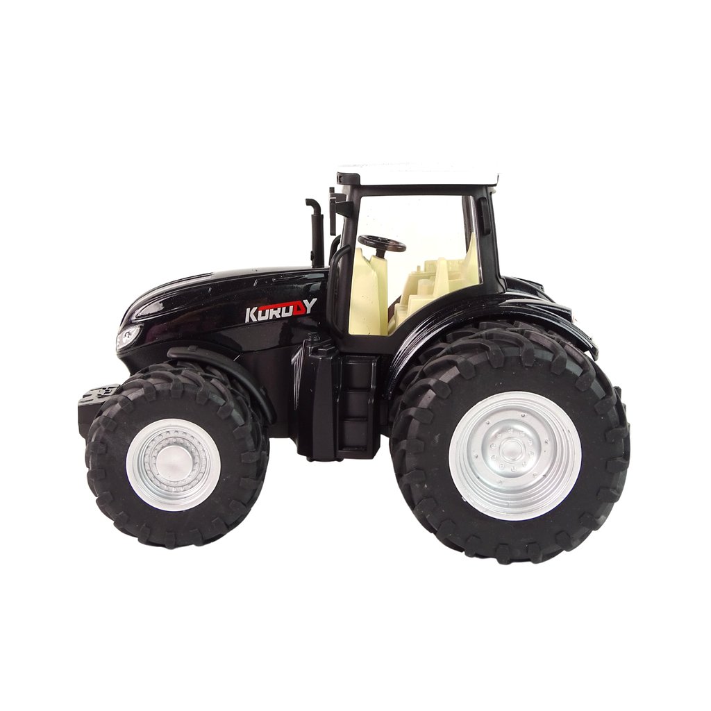 Traktor na dálkové ovládání R/C Černý 2,4G Kovový je hračka, která přináší skvělou zábavu pro všechny děti. Velké a hlučné stroje jsou perfektní způsob, jak přiblížit venkovský život. Projeďte se na farmě a usedněte za volant traktoru. Kabina je detailně zpracovaná a odpovídá skutečnému traktoru. Realistický vzhled, velké gumové pneumatiky a trvanlivá kovová karoserie jsou zárukou odolnosti. Kombinace černé barvy s bílou střechou upoutá pozornost. Přední světla svítí během jízdy a osvětlují cestu.