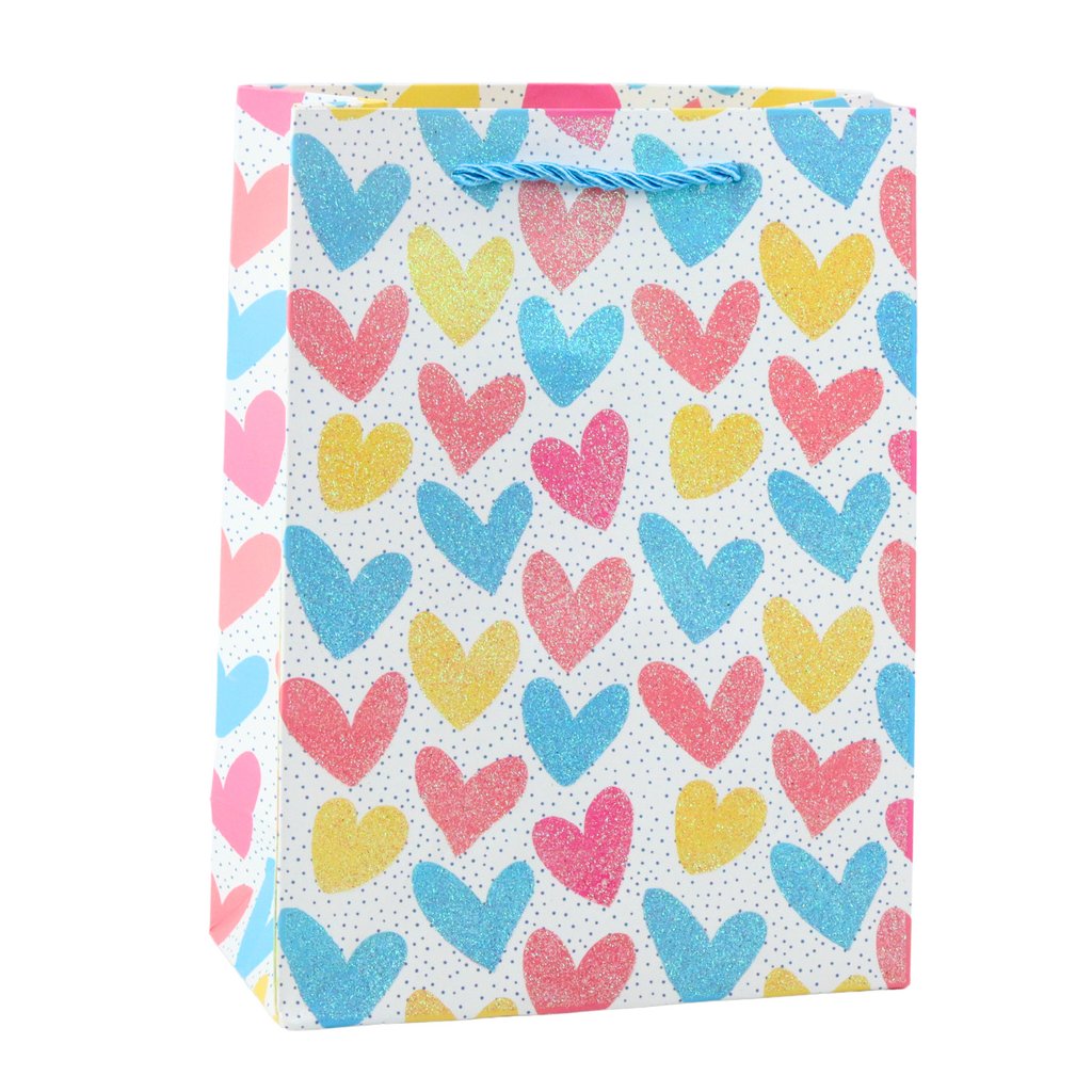 Dárková taška Srdce Hvězdičky Tečky Proužky Barevná 23 x 18 x 10,5 cm