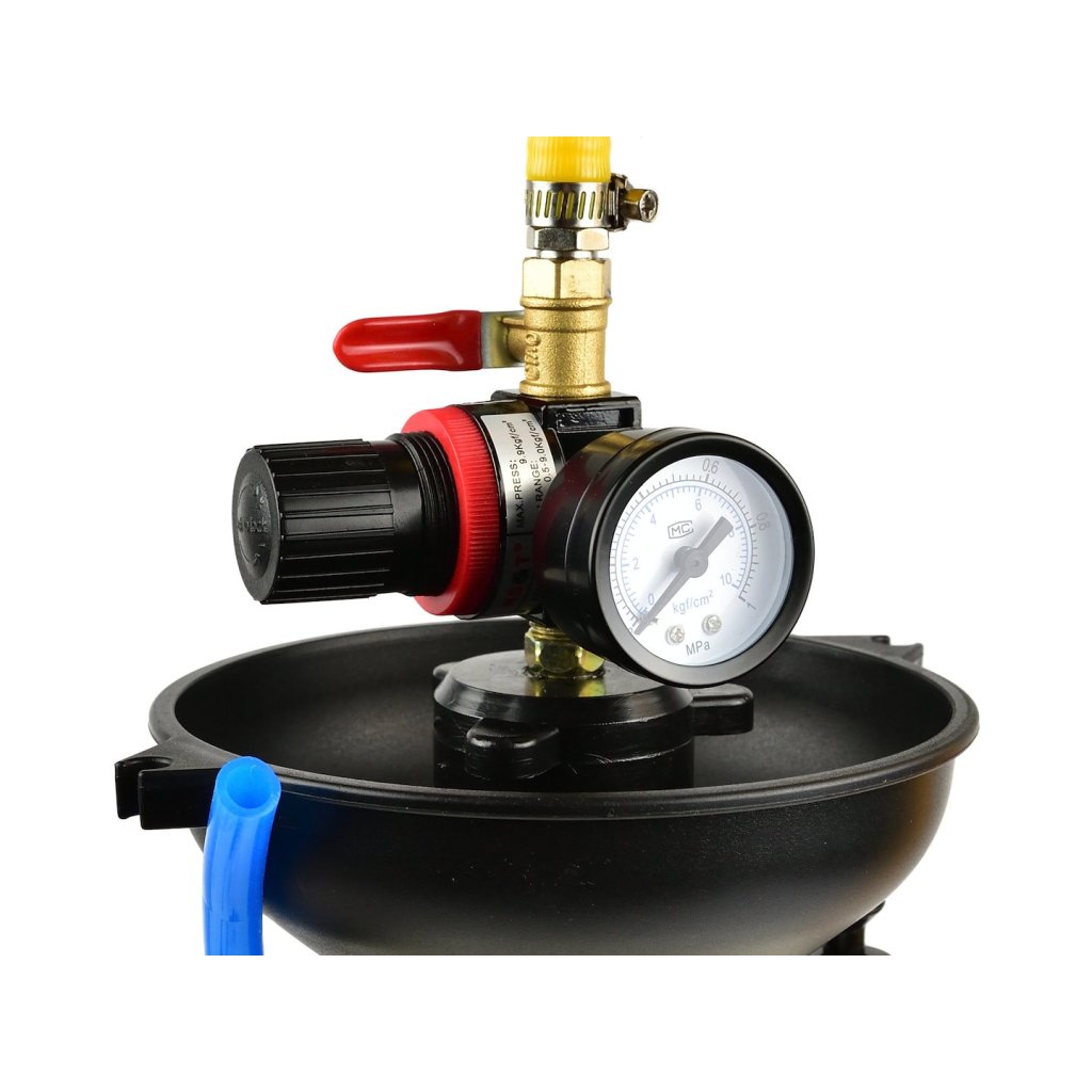 Pneumatický dávkovač s objemem 8 l určený k pneumatickému plnění oleje.