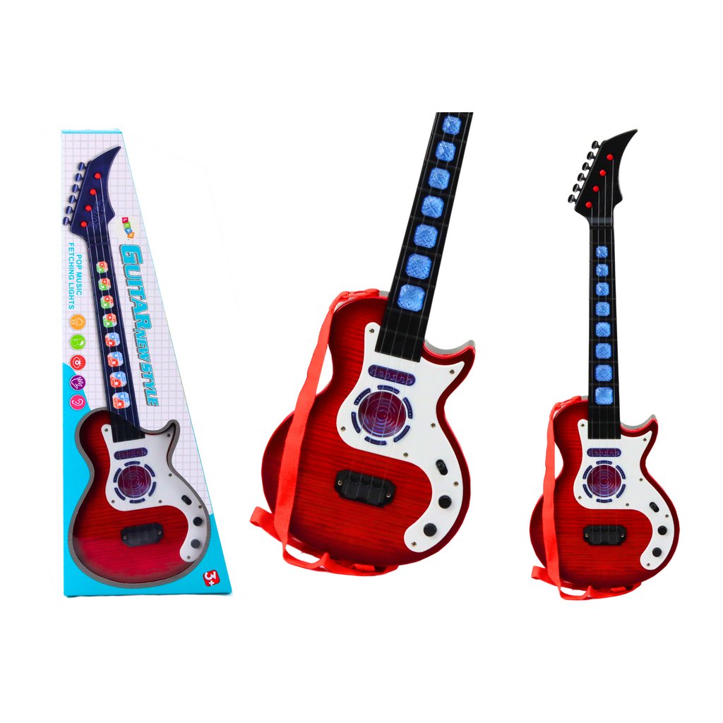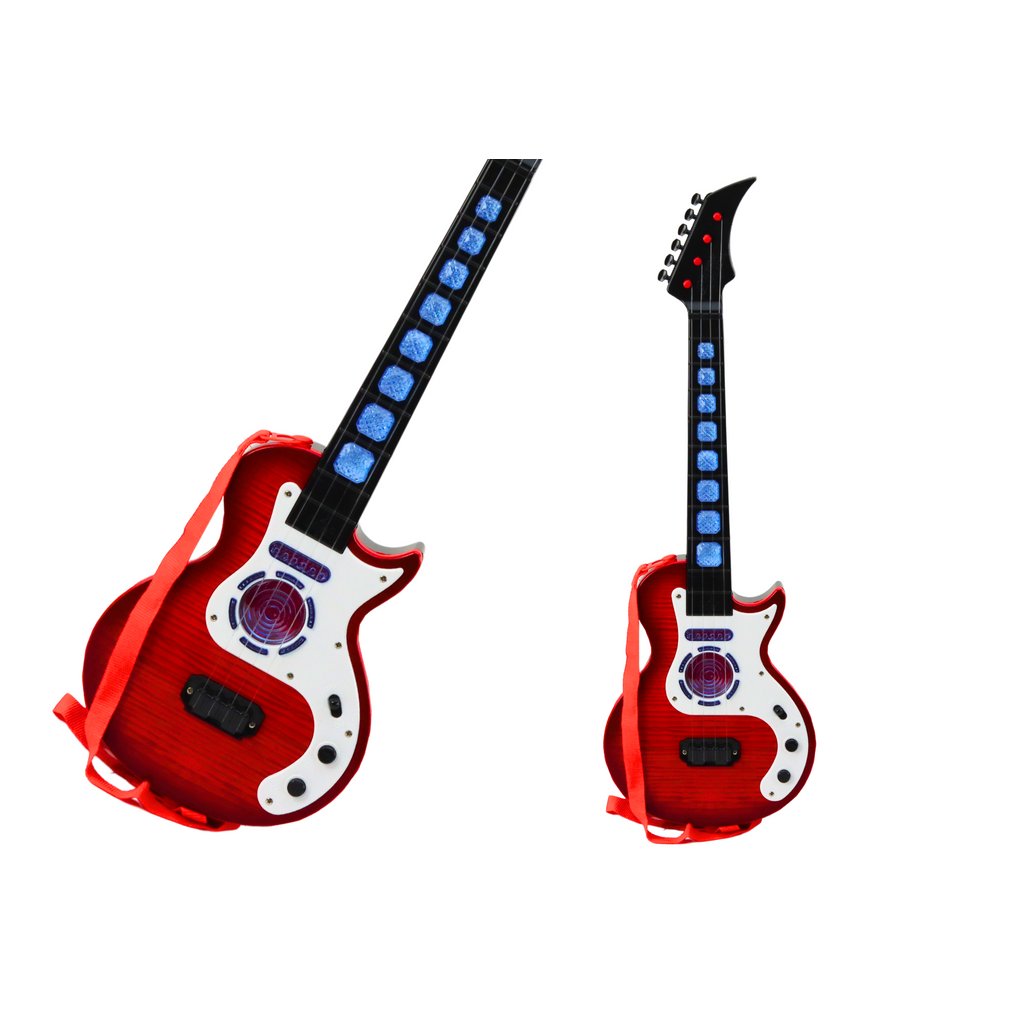 Dětská elektrická kytara ve výrazné červené barvě, ideální pro uvedení nejmladších do světa hudby Tato kytara zaujme nejen svým designem, ale i barevnými světelnými efekty, které dodávají každému vystoupení jedinečnou atmosféru