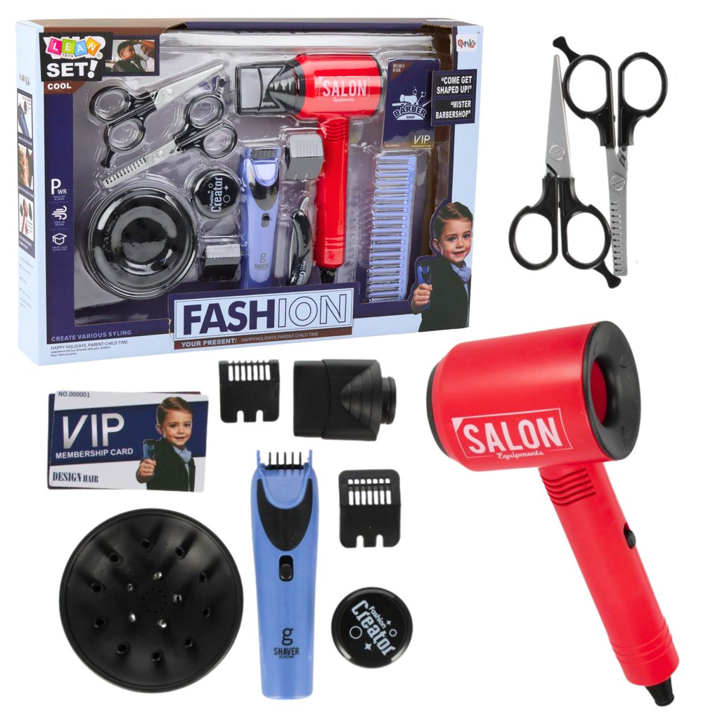 Dětská kadeřnická sada pro chlapce s fénem, strojkem a hřebeny