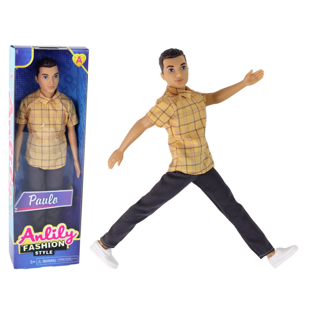 Panenka pro děti Chlapec Paulo Košile Hnědé vlasy Panenka pro děti Paulo je roztomilý kamarád, který je připraven si s vámi hrát Paulo má na sobě stylové tmavé kalhoty a žlutou kostkovanou košili s krátkými rukávy