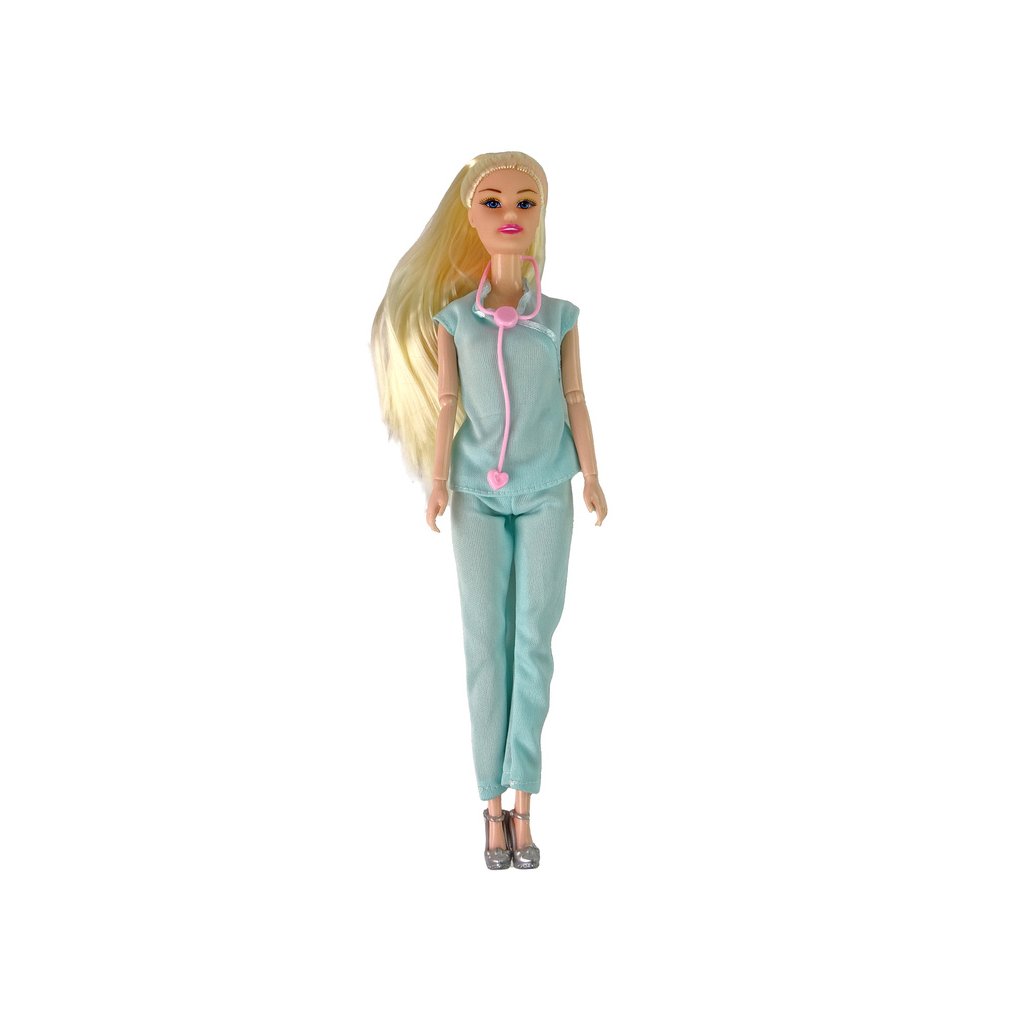 Panenka pro děti Doktorka s dlouhými vlasy a doplňky Představujeme jedinečnou panenku lékařku, která potěší malá srdíčka svými dlouhými, roztomilými blond vlasy a modrýma očima Její oblečení v podobě modrého pláště lékařského profesionála a kalhot v kombinaci s elegantními stříbrnými botami na podpatku vytváří sebevědomý a stylový vzhled