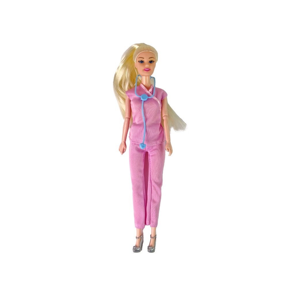 Panenka pro děti Doktorka s dlouhými vlasy a doplňky Představujeme jedinečnou panenku lékařku, která potěší malá srdíčka svými dlouhými, roztomilými blond vlasy a modrýma očima Její oblečení v podobě růžového pláště lékařského profesionála a kalhot v kombinaci s elegantními stříbrnými botami na podpatku vytváří sebevědomý a stylový vzhled