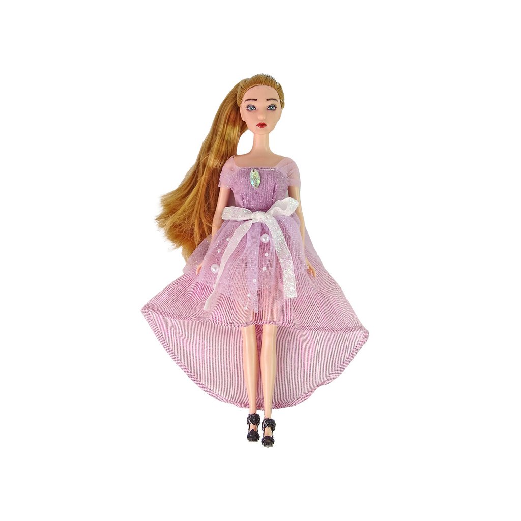 - Tato krásná panenka je oblečena do dlouhých šatů, které okouzlují třpytivými růžovými detaily, ozdobnými perličkami a mašlemi