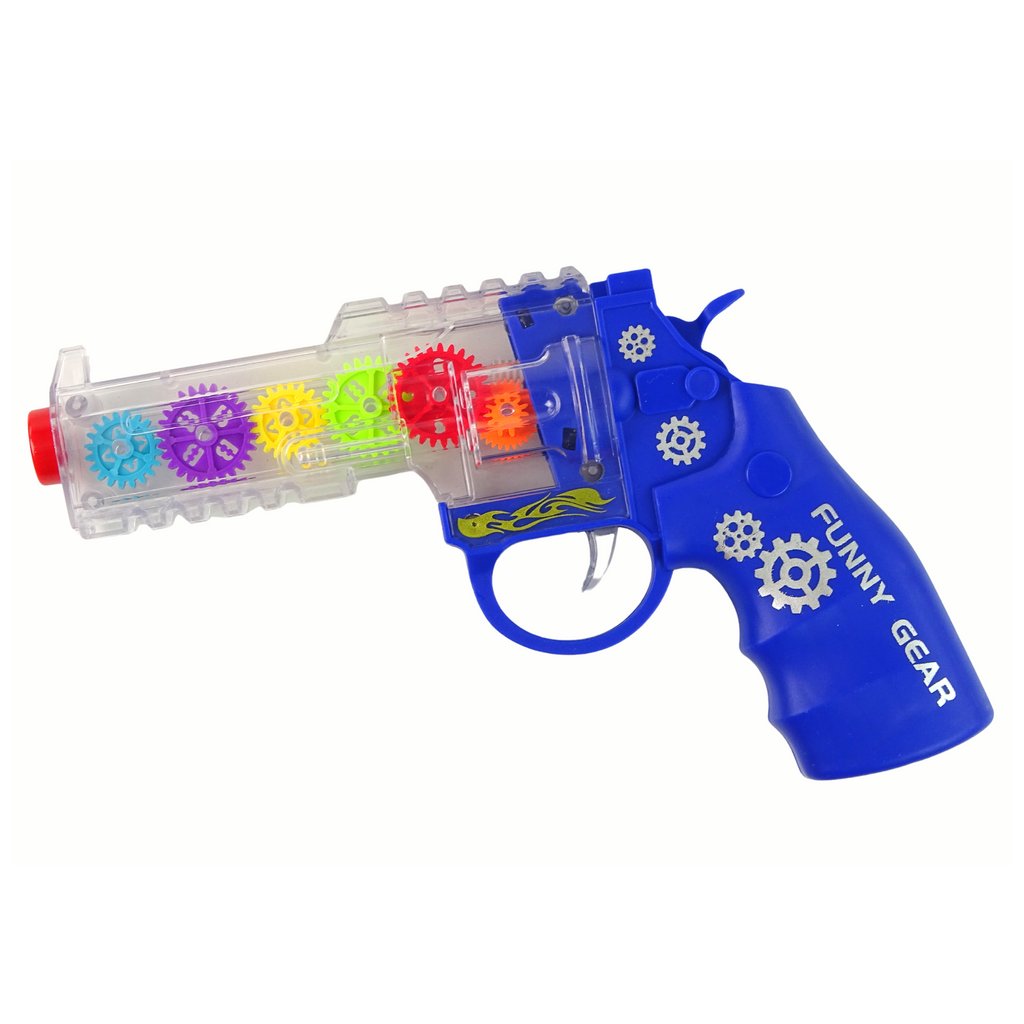 Pistole s barevnými světly a zvukem, modrá Představujeme vám úžasnou pistoli pro děti v modré barvě!
